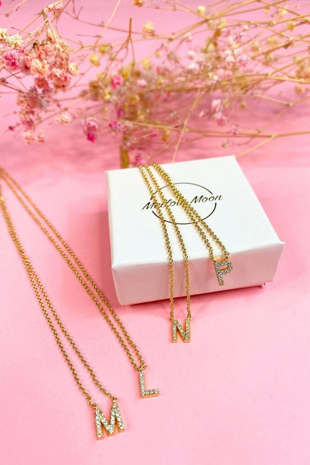 Ein weiterer Bestseller sind Halsketten mit Buchstaben. Diese sind ein großer Hit für Kinder und Erwachsene und eignen sich hervorragend als persönliche und durchdachte Geschenkidee. Unsere neueste Kreation sind MOM-Halsketten. Diese zeichnen sich durch ihren weißen Emaille-Rand aus, der perfekt mit der markanten Schrift harmoniert. Die MOM-Halsketten sind in Silber und Gold erhältlich.
