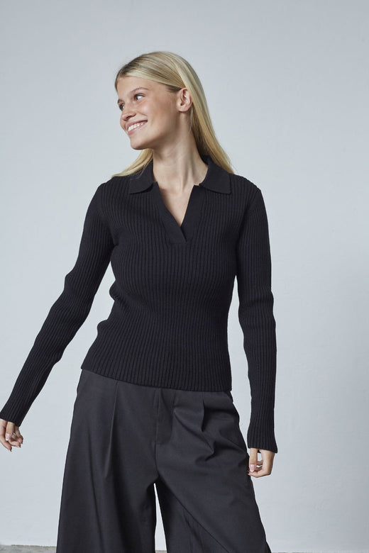 Die Strickkollektion überzeugt durch ihre Vielseitigkeit. Ob gestreifte Blusen mit Rippbündchen, feminine Tops mit Puffärmeln oder klassische Poloshirts mit V-Ausschnitt – die durchdachten Schnitte garantieren einen bequemen Sitz bei jedem Trageanlass.