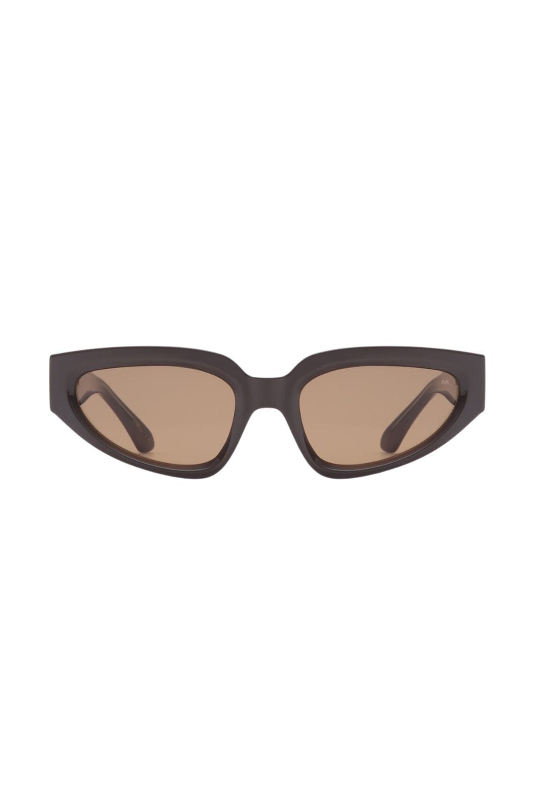 Sonnenbrillen von A. Kjærbede in einer dunklen Schokoladenfarbe. Das Gestell hat eine Cat-Eye-Form mit schmalen, ovalen Gläsern und einem nach oben geschwungenen Rahmen, der einen Retro-Touch verleiht.