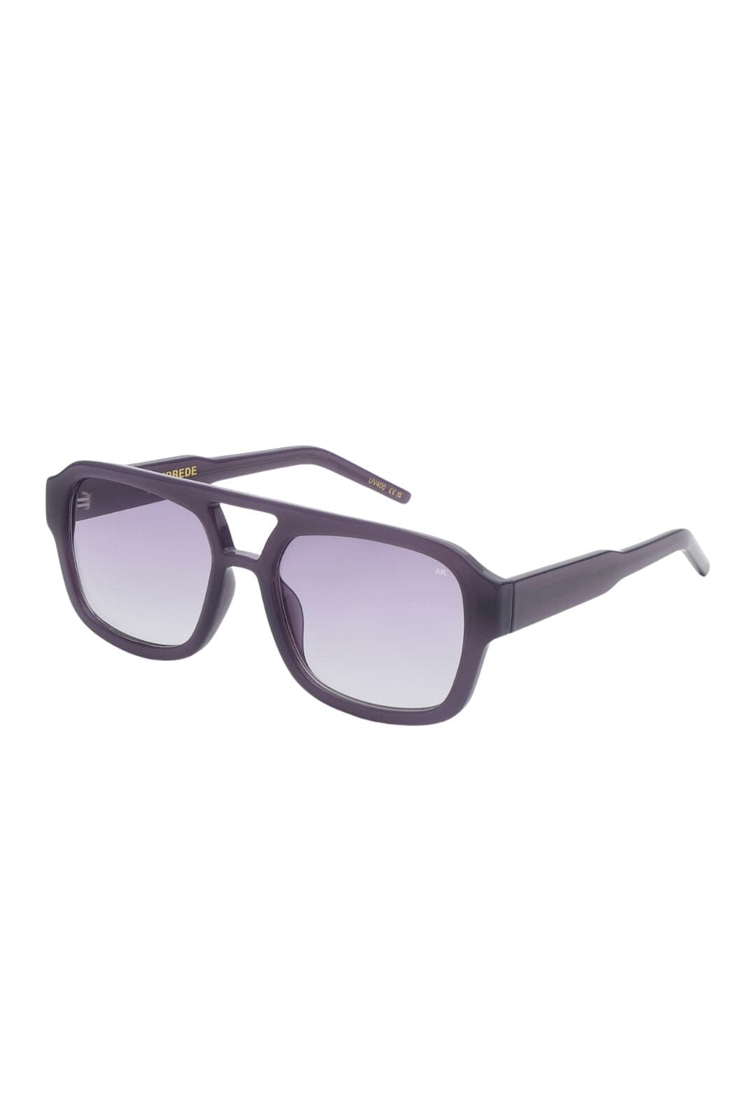 Sonnenbrille von A. Kjærbede in einem lila Farbton mit Aviator-Gestell. Das Gestell hat Verlaufsgläser und besteht aus langlebigem Tritan Renew-Material mit UV 400-Schutz.