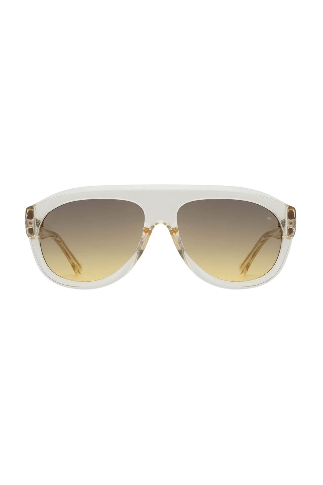 Sonnenbrille von A. Kjærbede in transparentem Ecru. Das Aviator-Design hat einen skulpturierten Rahmen mit abgestuften Gläsern, die oben dunkler und unten heller sind.