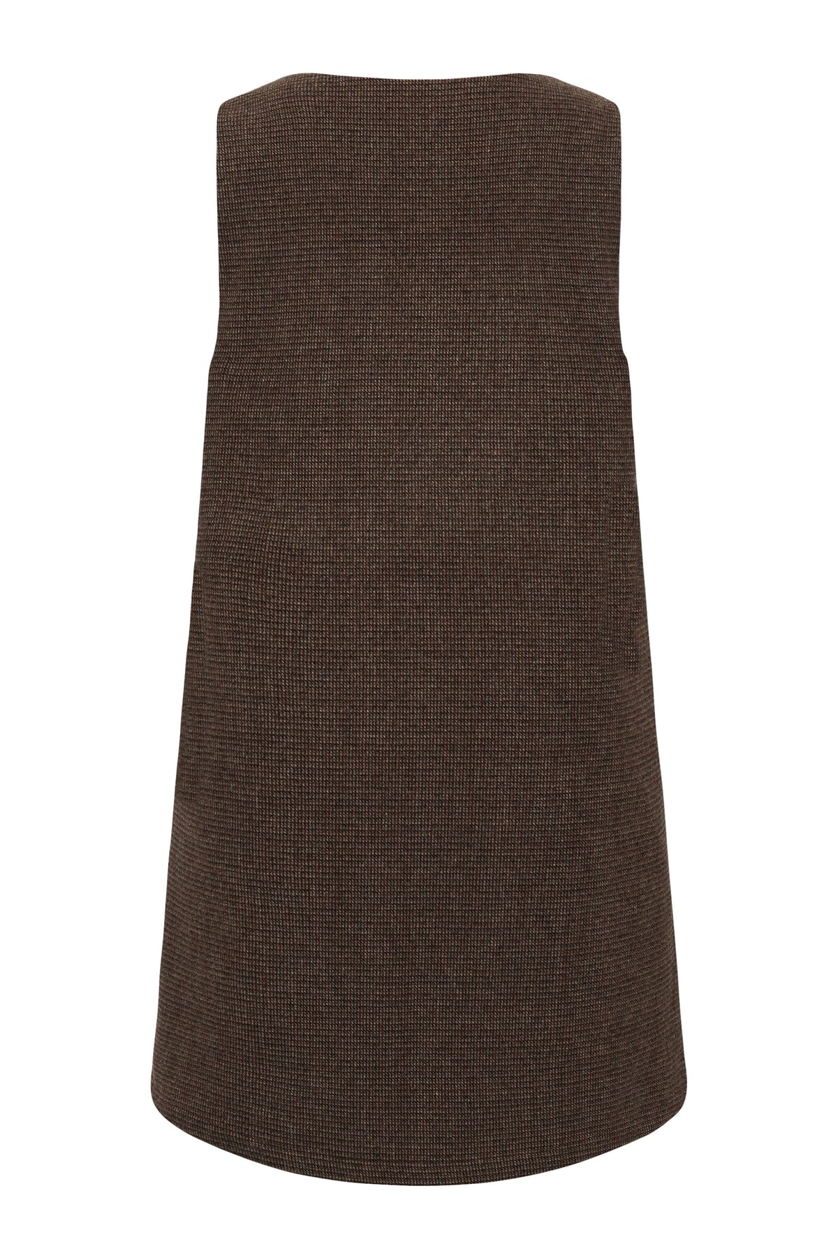 Braunes/rostfarbenes Kleid von A-View mit kariertem Muster. Das Kleid ist ärmellos mit V-Ausschnitt und hat eine leicht A-linienförmige Silhouette.