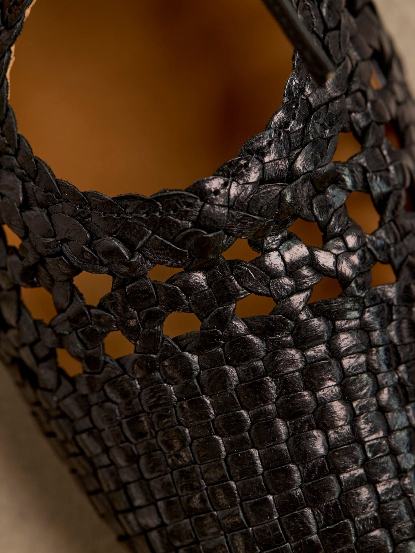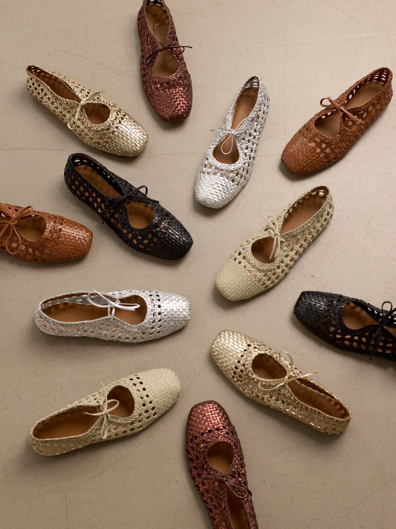 Schwarze Ballerina von Angulus mit geflochtenem Lederdesign. Die geflochtene Struktur verleiht dem Schuh einen luftigen Ausdruck, während die Schnürsenkel und die runde Zehe einen klassischen Look schaffen.