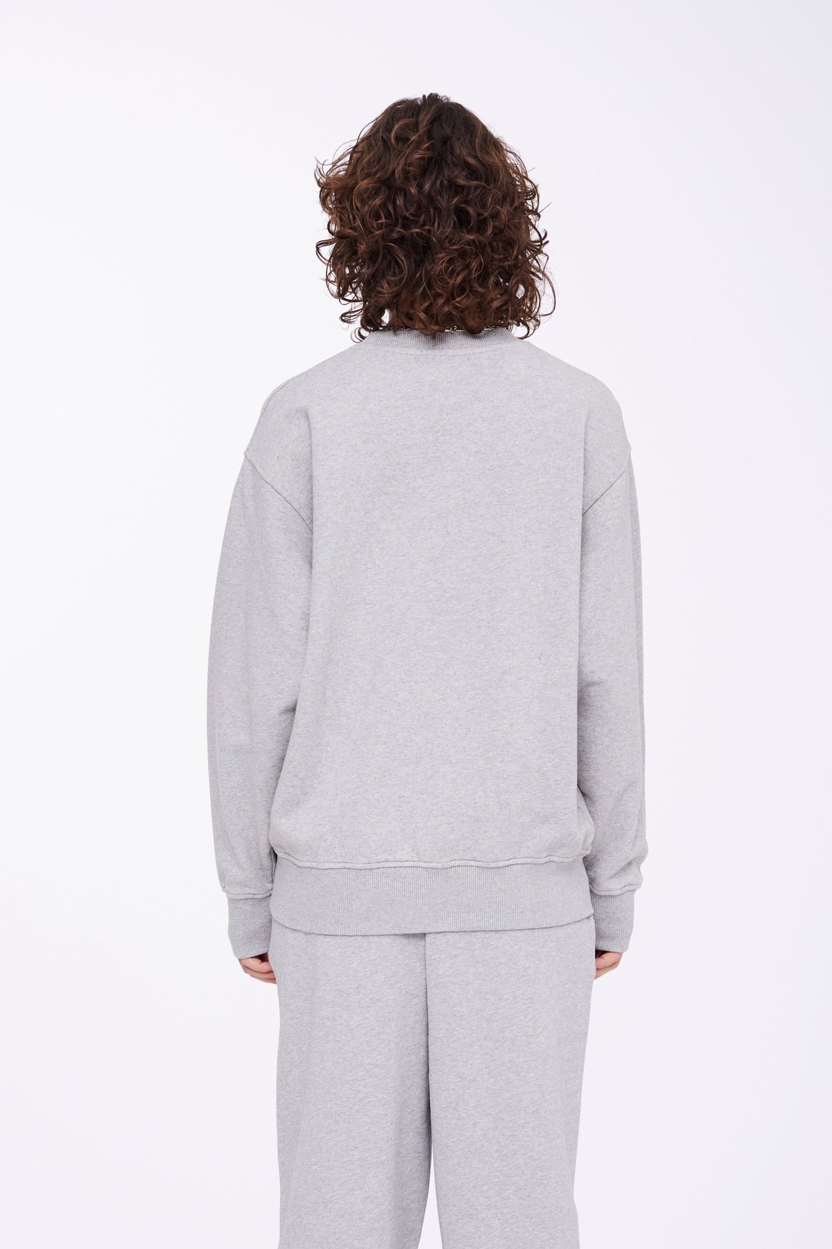 Mittelgrauer Sweatshirt von Ball mit gesticktem Logo auf der Brust. Der melierte Effekt und die gerippten Kanten verleihen dem Sweatshirt einen robusten Ausdruck.
