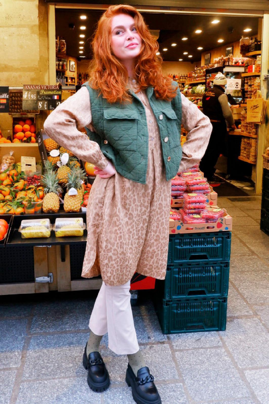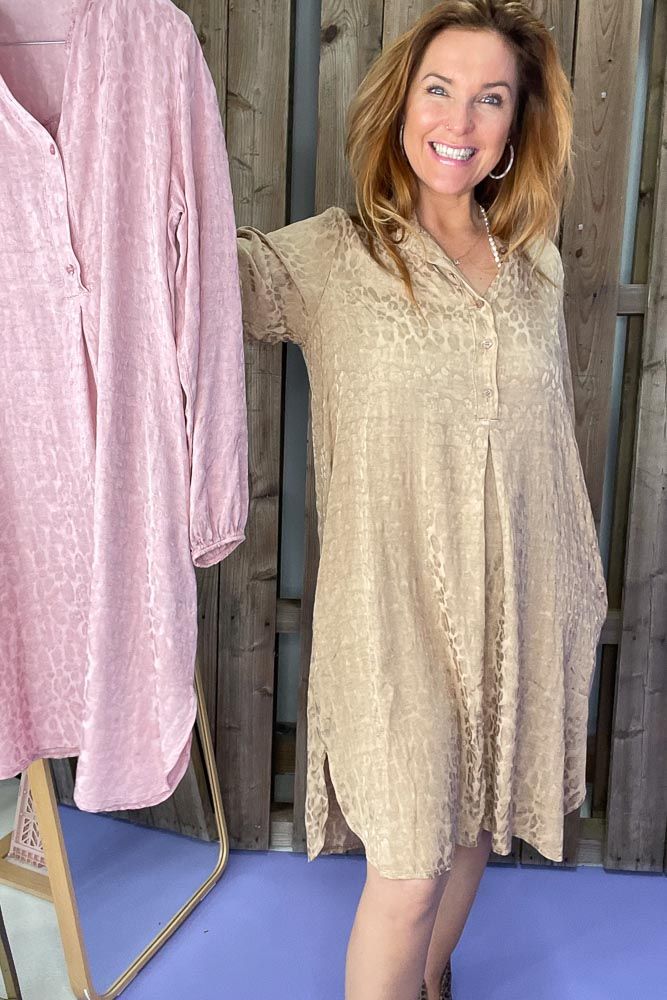Sød og elegant tunika med brunt leopardprint fra Black Colour. Tunikaen har knapper i det øverste stykke, og elastikkant ved håndleddene.