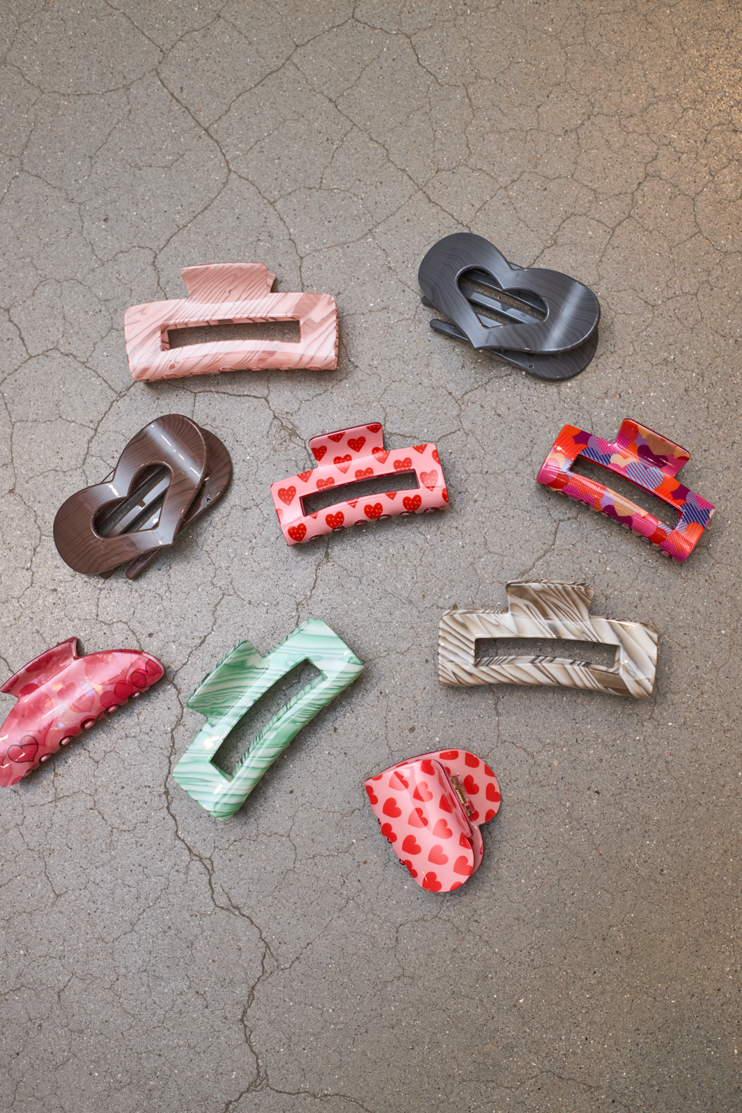 Haarspange von Black Colour, aus Acryl in Rosa mit roten Herzen. Das Design kombiniert eine rosafarbene Basis mit einem roten Herzmotiv.