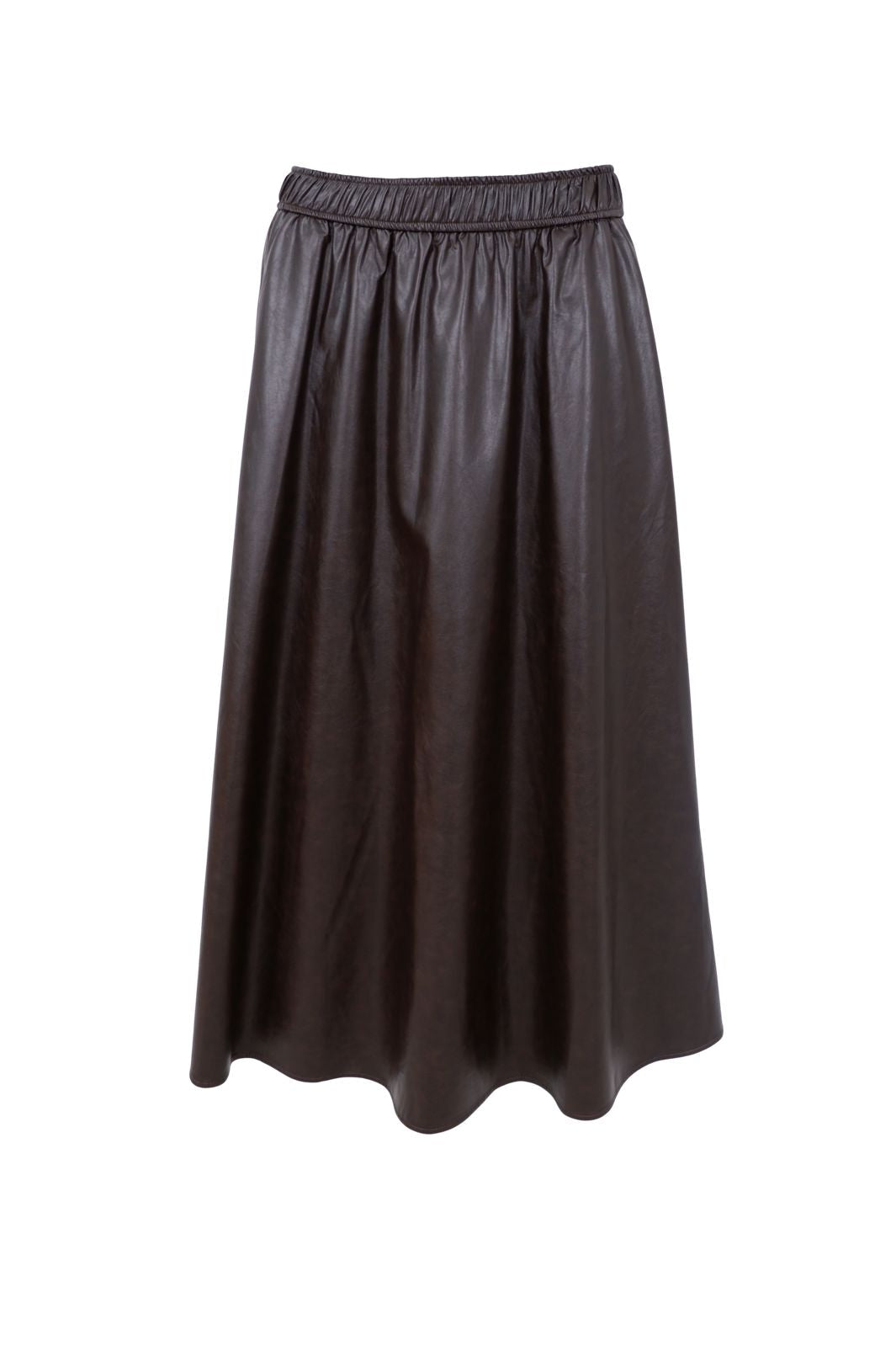 Brauner Rock von Black Colour mit glänzender Oberfläche. Der Rock hat eine hohe Taille und eine lockere Passform, die bis zur Mitte der Wade reicht.