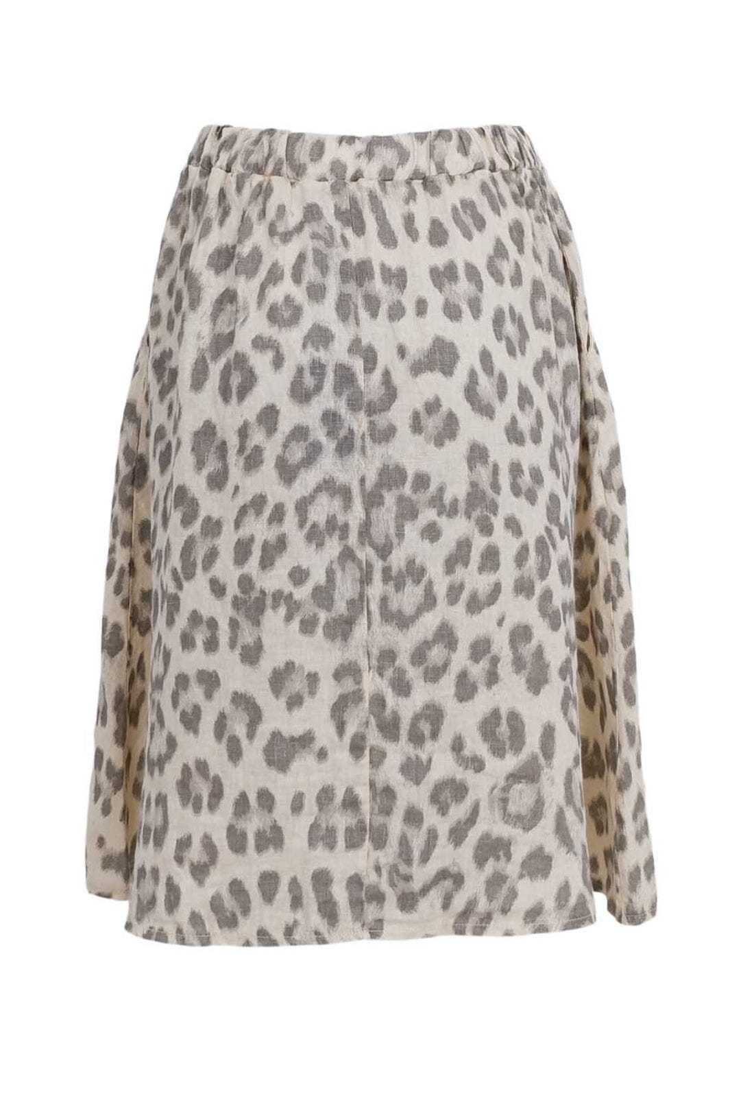 Kurzes Leinenrock von Black Colour mit Leopardenmuster in natürlichen Farben. Der Rock hat eine lockere Passform und besteht aus reinem Leinen, was einen leichten und luftigen Ausdruck verleiht.