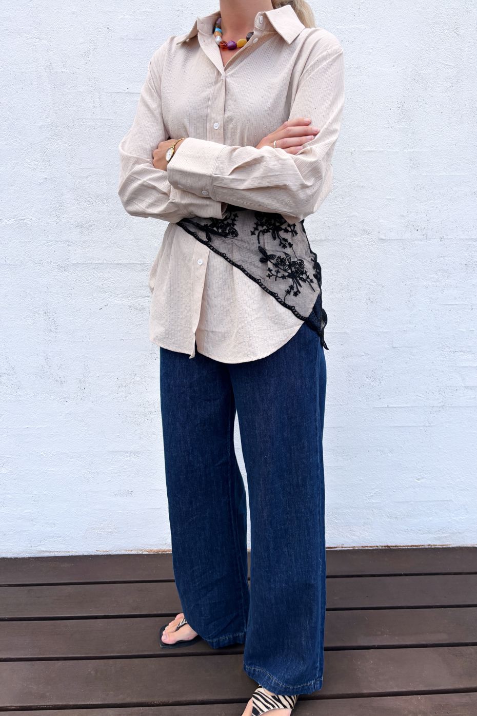 Schwarzes Tuch von Black Colour in dreieckiger Form. Das Tuch hat ein schönes Spitzenmuster mit Blumenmotiven auf schwarzem Hintergrund. Es kann auf verschiedene Arten gestylt werden, sowohl um den Hals als auch um die Taille.