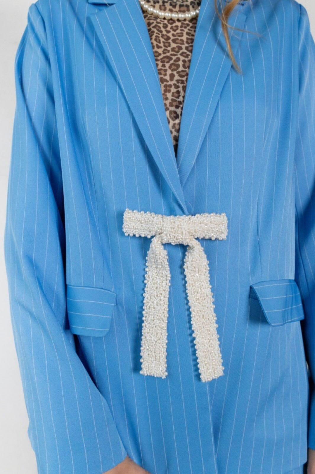 Weißes Haarschmuck von Black Colour mit Schleifenform und perlenbesetzter Oberfläche. Die Spange hat eine klassische Form mit einem feinen, perlenbesetzten Look.