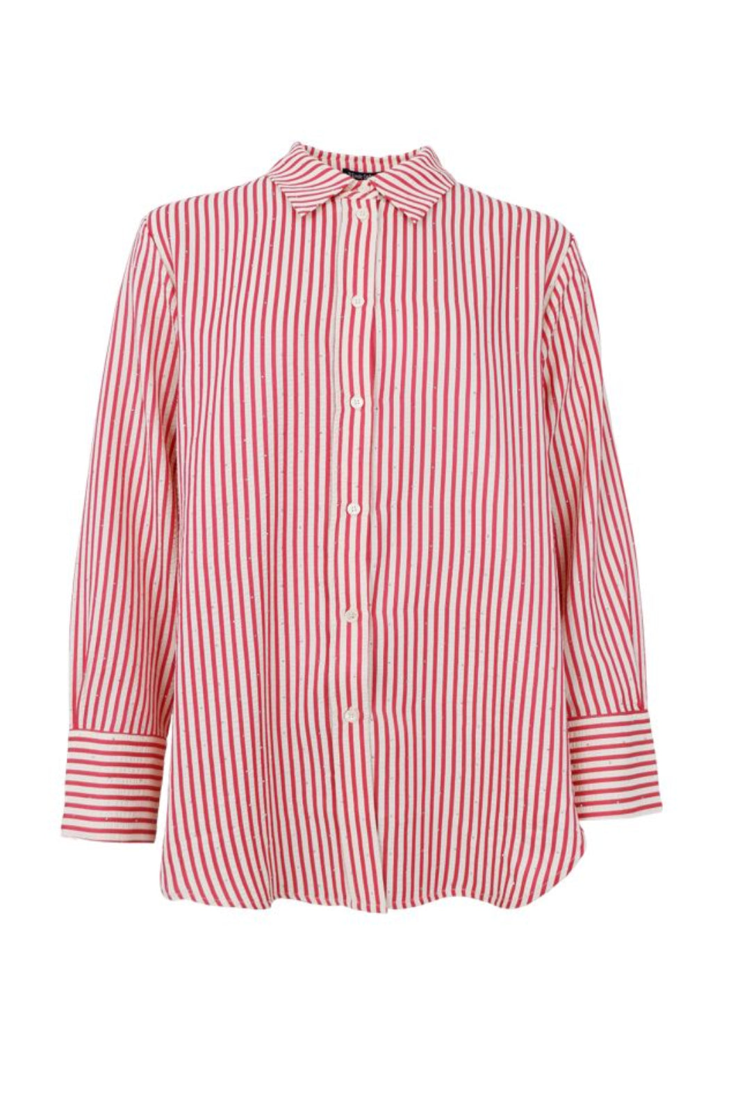 Gestreiftes Hemd von Black Colour in Rot und Weiß. Das Hemd hat Pailletten sowie einen klassischen Kragen mit langen Ärmeln und Knopfverschluss.