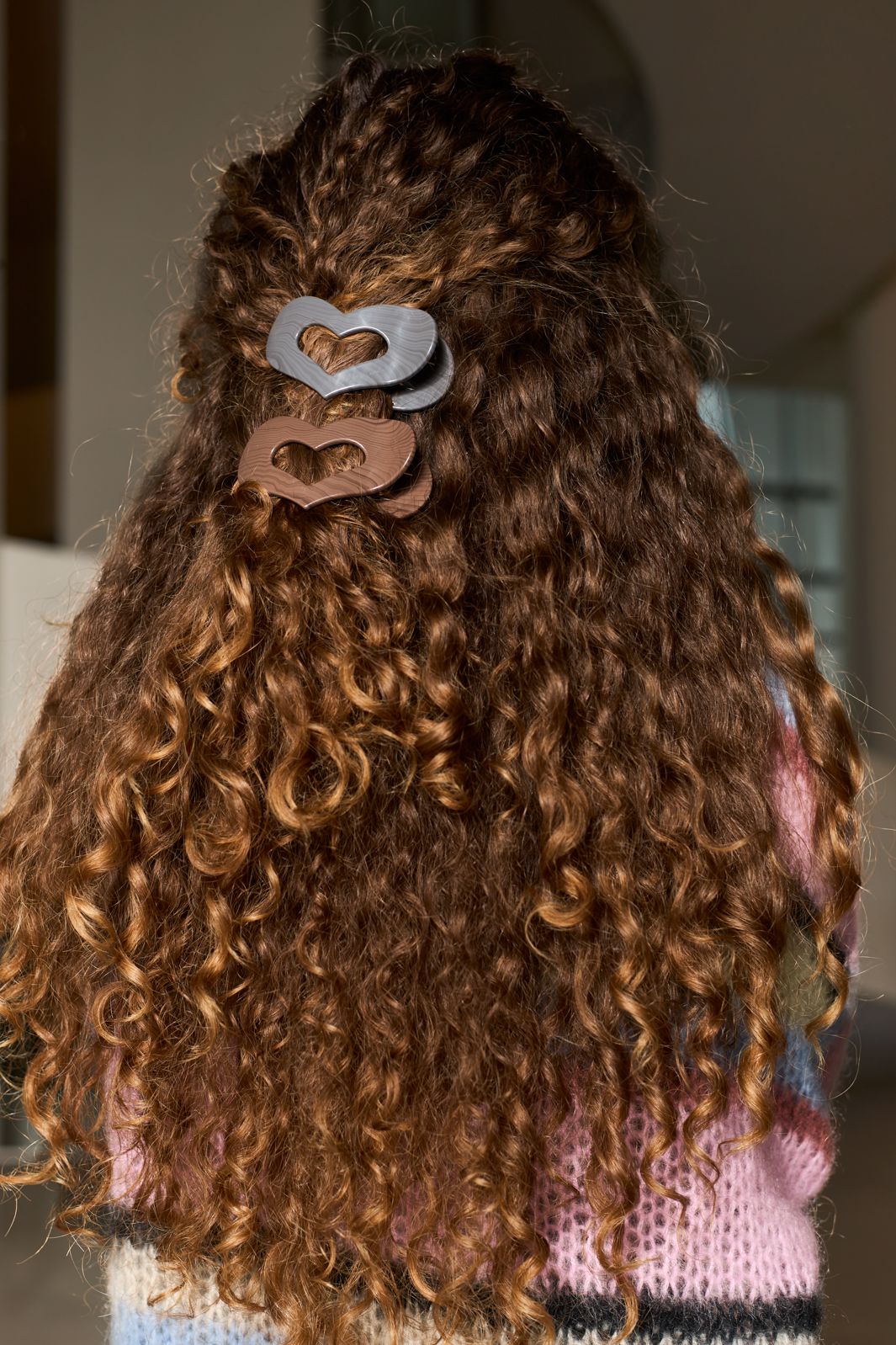 Haarspange von Black Colour in Grau mit einem herzförmigen Design und einer glatten, glänzenden Oberfläche. Die Spange hat eine zentrale Öffnung in der Herzform.