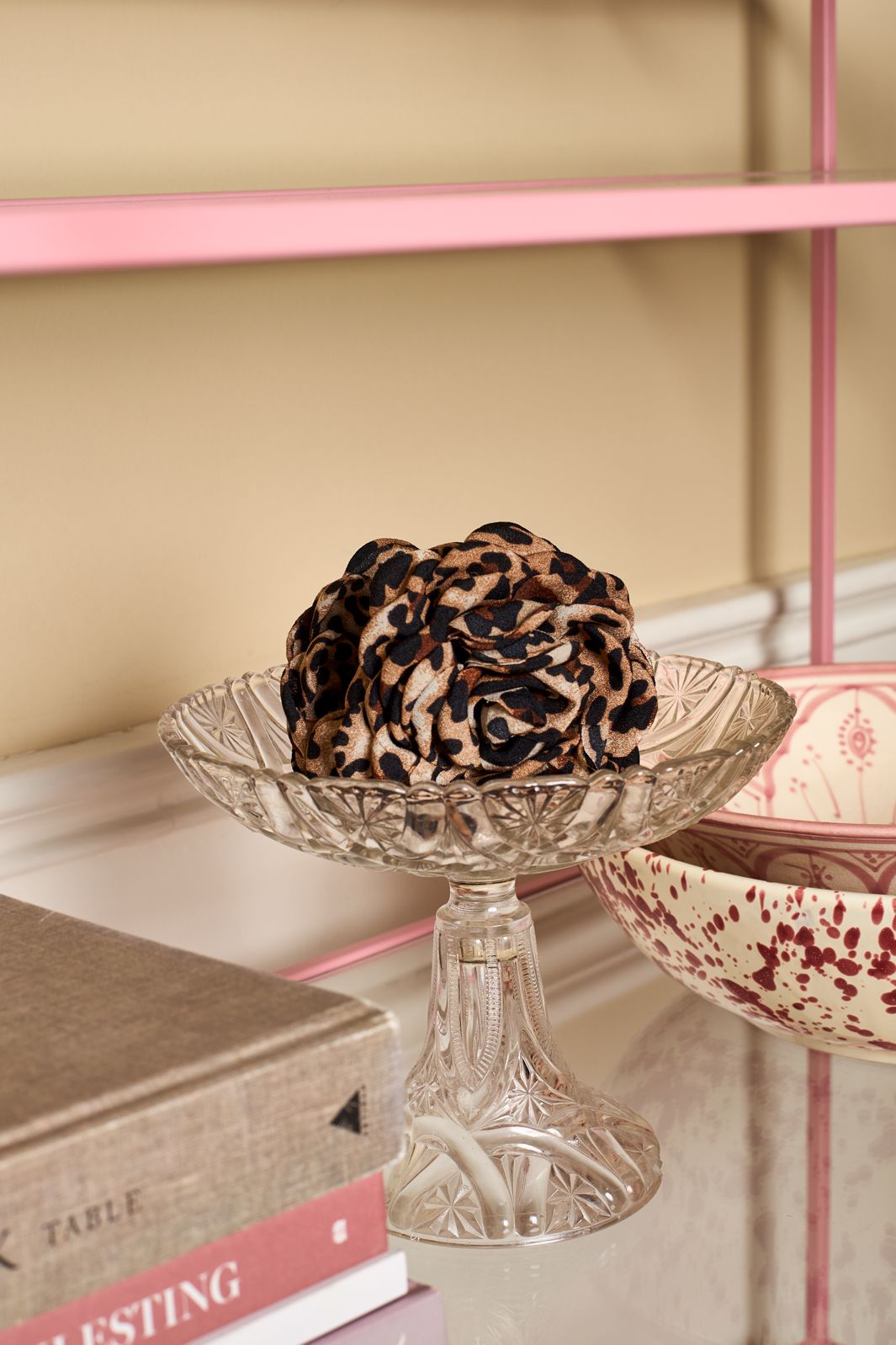 Haarspange von Black Colour, geformt wie eine Blume mit Leopardenmuster in Brauntönen. Das Design verbindet eine dekorative Form mit praktischer Funktion.