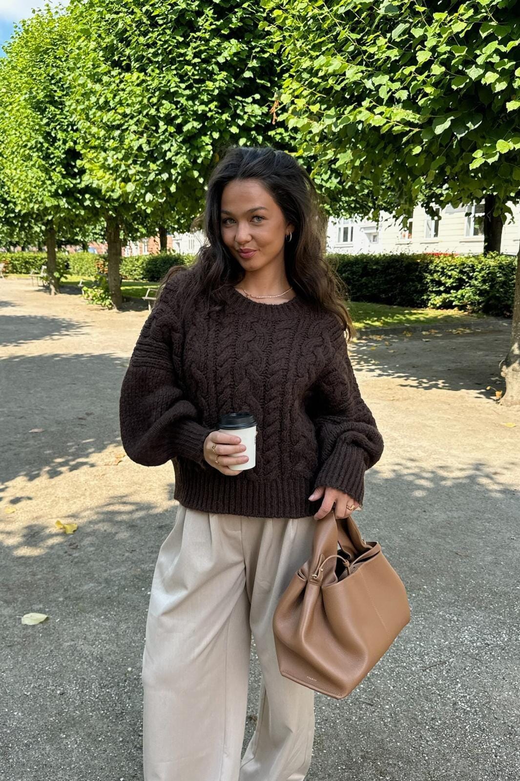 Schokoladenbrauner Pullover von BYIC mit Kabelstrickmuster. Die lockere Passform und das dicke Strick verleihen dem Pullover einen rustikalen Ausdruck mit guter Wärme.