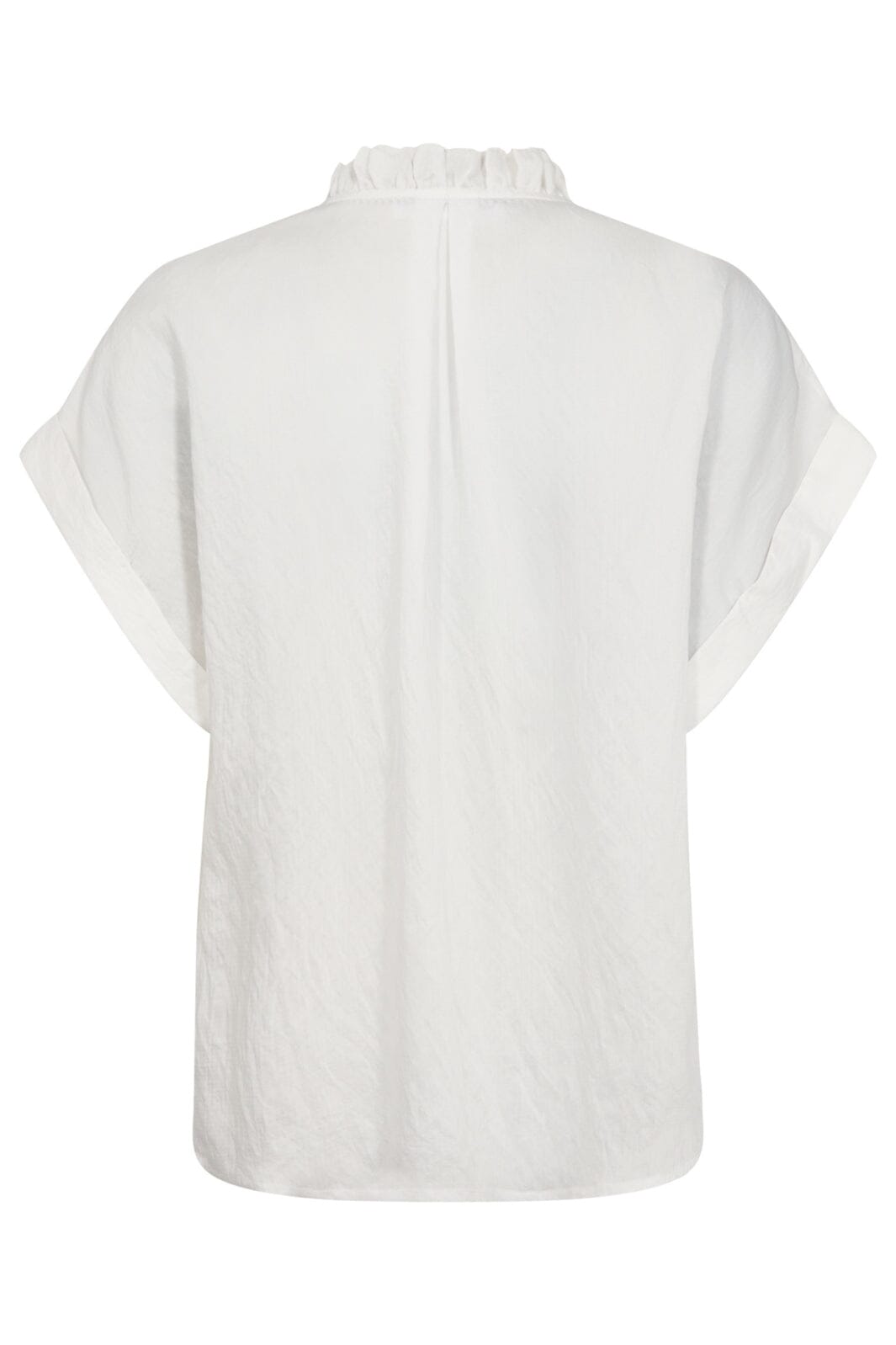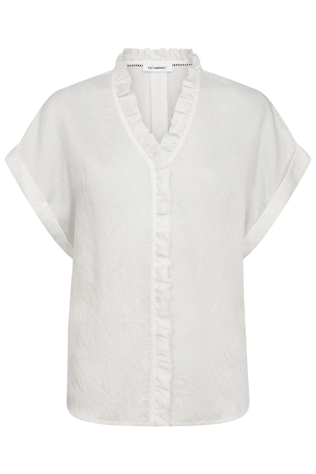 Off-white Top von Co'Couture mit Rüschendetails und V-Ausschnitt. Die Top hat kurze Ärmel und eine weiche Textur, die einen femininen Ausdruck verleiht.