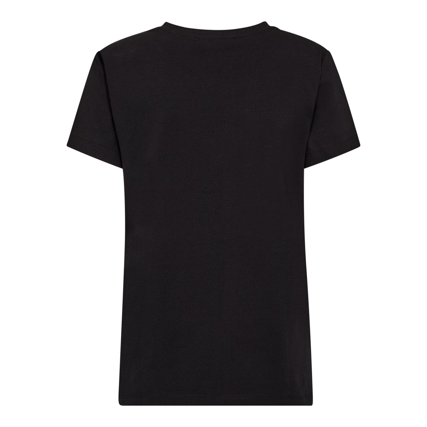 Schwarzes T-Shirt von Co´Couture mit weißem C°C°-Print auf der Vorderseite. Das T-Shirt hat kurze Ärmel und einen runden Halsausschnitt.