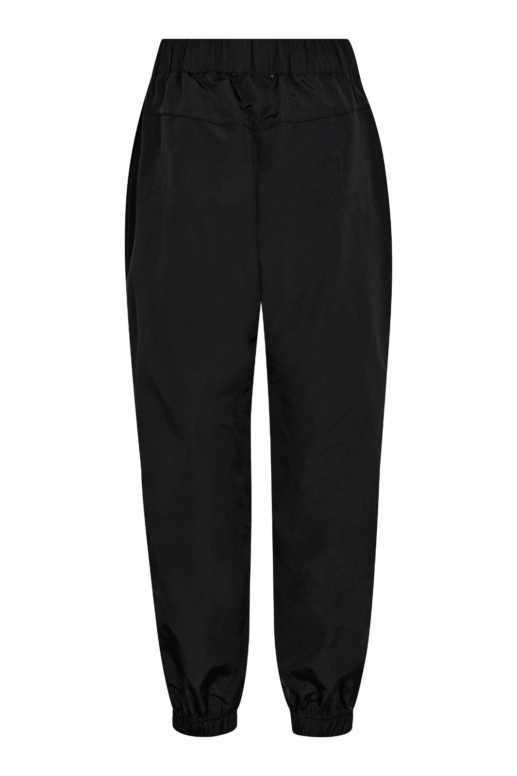 Schwarze Hosen von Co'Couture mit hoher Taille und elastischen Bündchen an den Knöcheln. Die Hosen haben große Taschen vorne und eine Kombination aus Reißverschluss und Gummizug in der Taille.