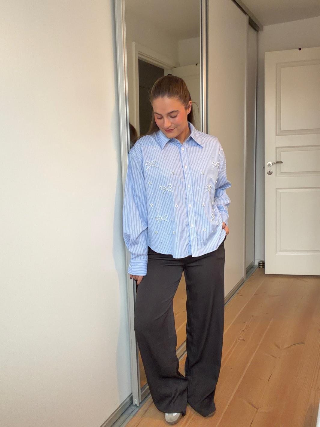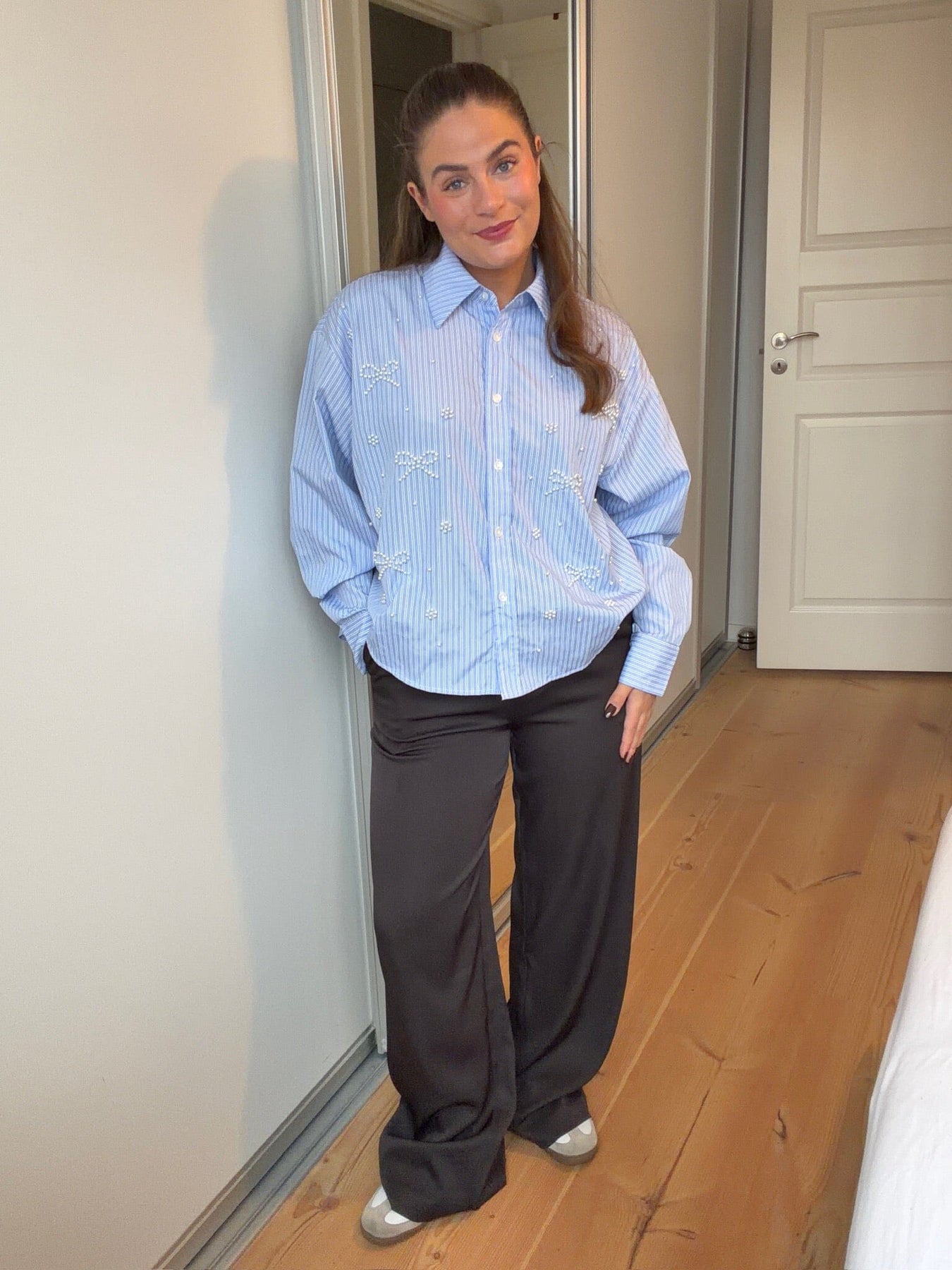 Braune Hosen von Dear Molly mit einer langen, geraden Passform. Die Hose hat eine hohe Taille und eine lockere Passform.