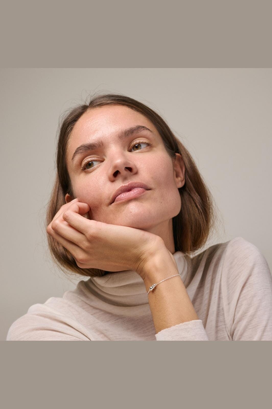 Silberarmband von Enamel Copenhagen mit drei kugelförmigen Elementen an der Kette. Das Armband besteht aus 925 Sterling Silber, von dem 70 % aus recyceltem Material hergestellt sind.