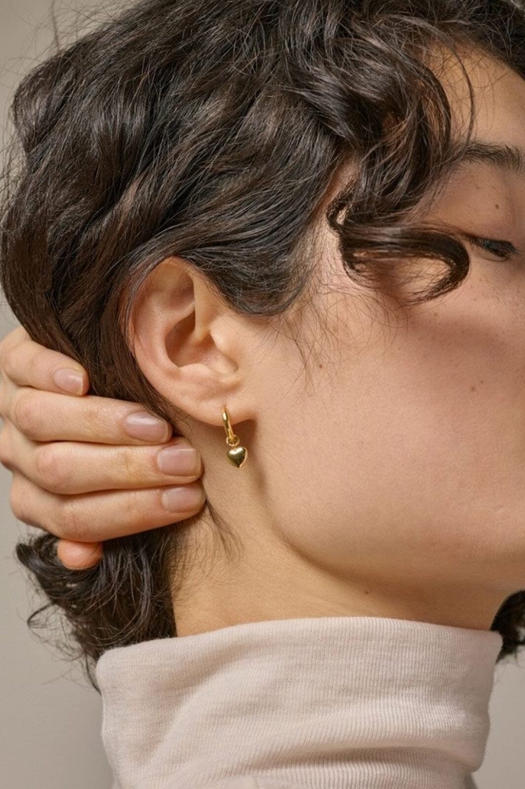 Goldplattierte Hoops von Enamel Copenhagen mit abnehmbaren Herzanhängern. Die Ohrringe sind aus recyceltem Sterlingsilber mit einer 18-karätigen Goldbeschichtung gefertigt.