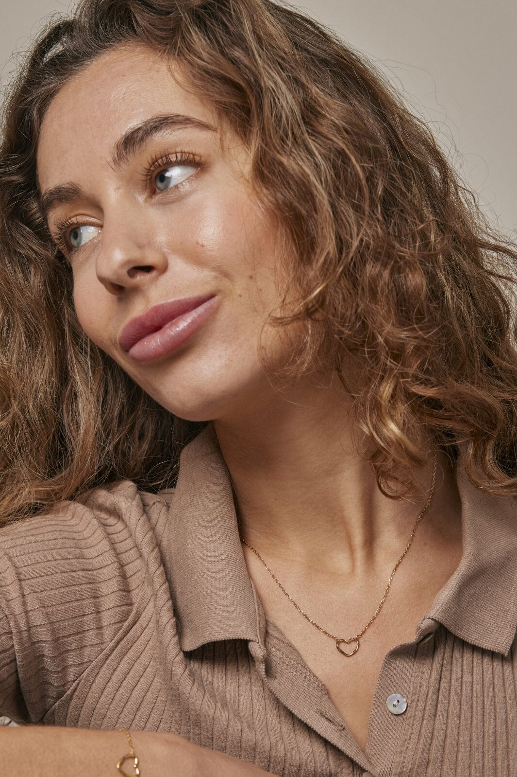 Handgefertigte Halskette von Enamel Copenhagen mit einem organischen herzförmigen Anhänger. Die Kette besteht aus 50 % recyceltem Sterlingsilber mit 18K Vergoldung.