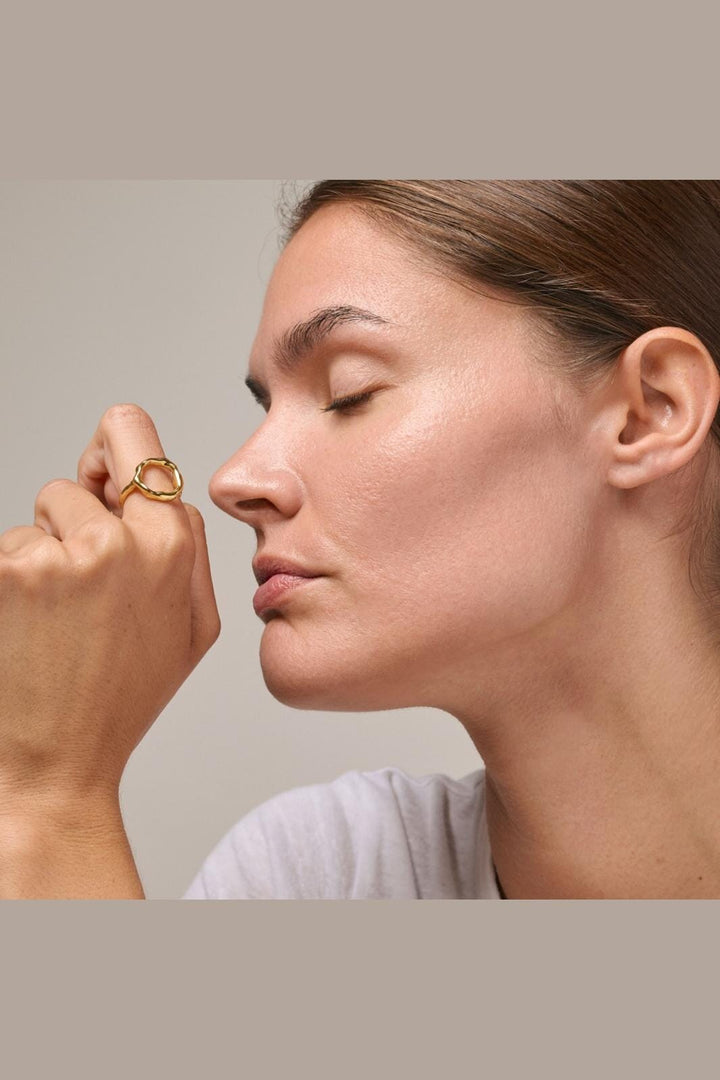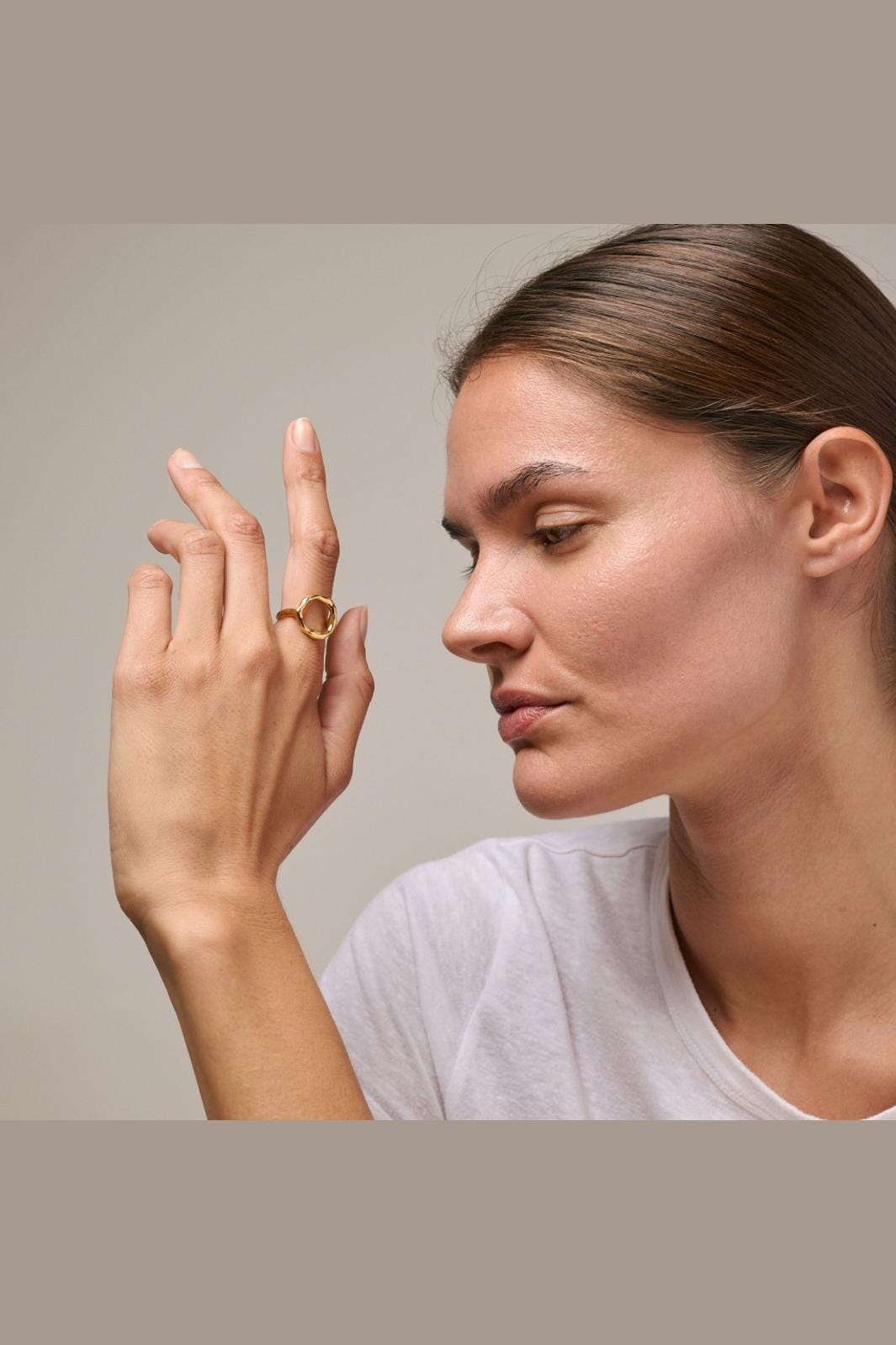 Goldplattierter Ring von Enamel Copenhagen mit einer organischen, gewellten Form. Der Ring besteht aus 925 Sterling Silber mit 18 Karat Goldplattierung und hat ein offenes Zentrum.