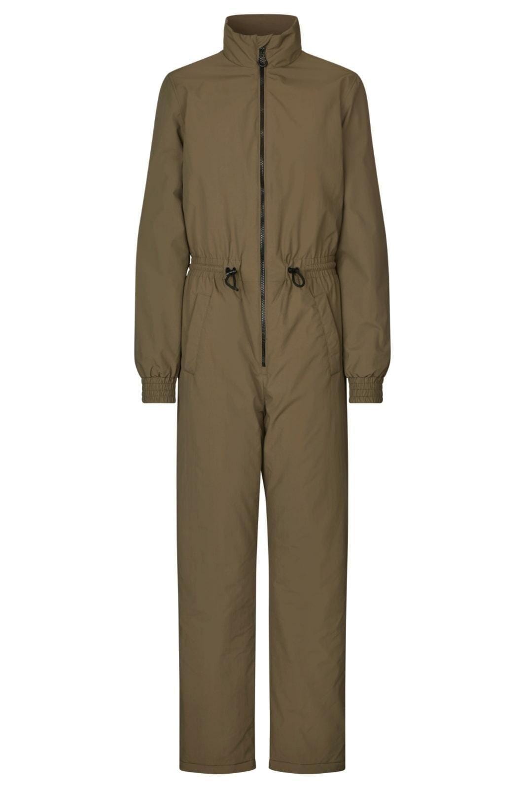 Der Overall hat praktische Taschen und eine verstellbare Taille, die die Figur betont.