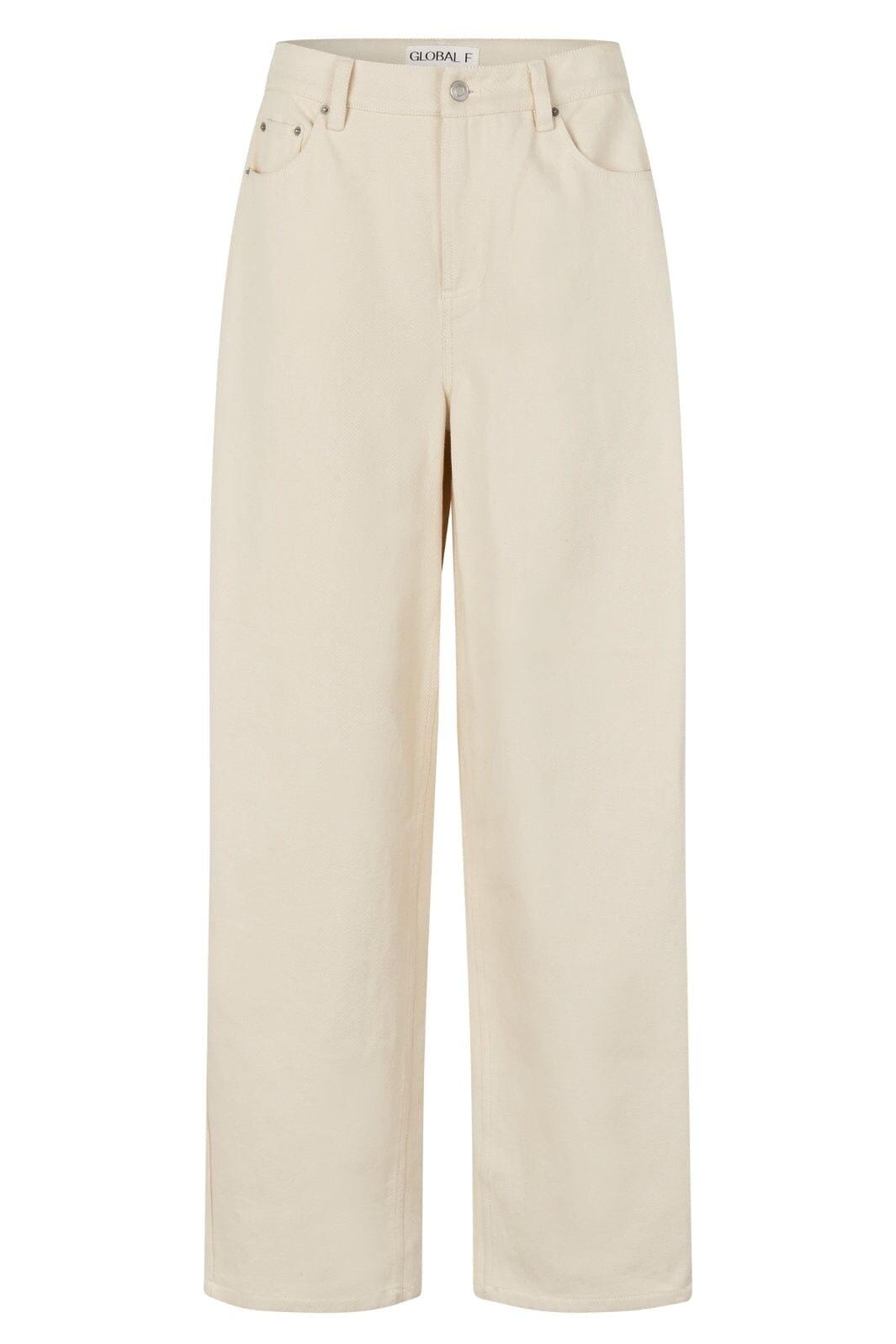Lange Jeans von Global Funk in einer hellen Ecru-Farbe. Die Hose hat eine gerade Passform und besteht aus reiner Baumwolle, die gute Bewegungsfreiheit im Alltag bietet.