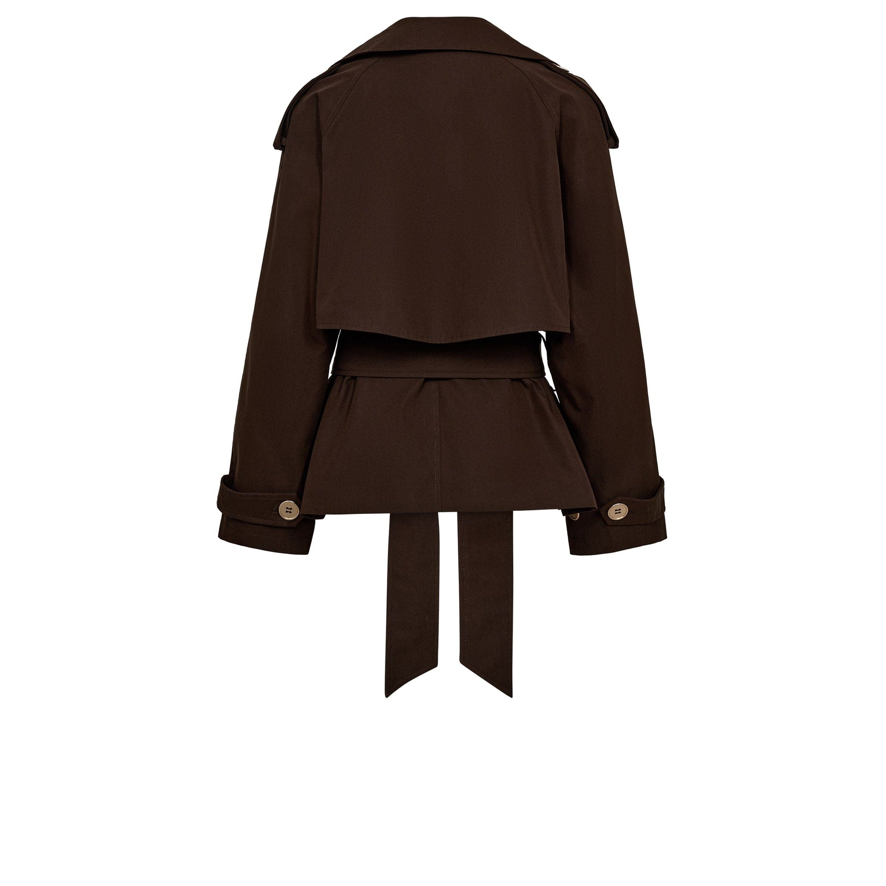 Brauner Trenchcoat von Gossia in der Farbe Toffee. Der Mantel eignet sich sowohl für formelle als auch für legere Anlässe und verfügt über klassische Details wie ein breites Revers und einen Gürtel in der Taille.