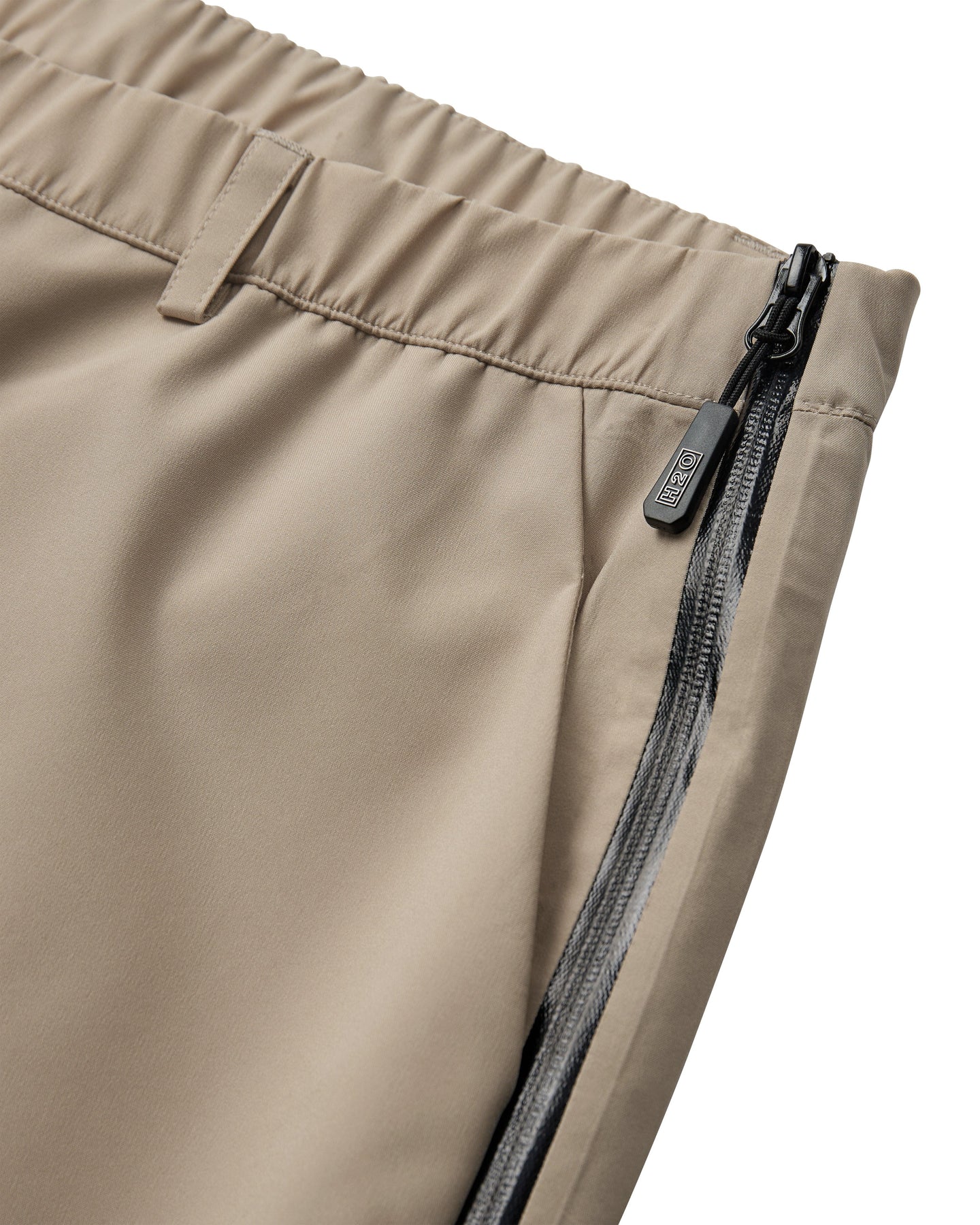 Regenanzug in warmem Grau von H2O mit wasserdichter und atmungsaktiver Konstruktion. Das Set besteht aus einer Jacke mit verstärkter Kapuze und einer Hose mit durchgehenden Reißverschlüssen.