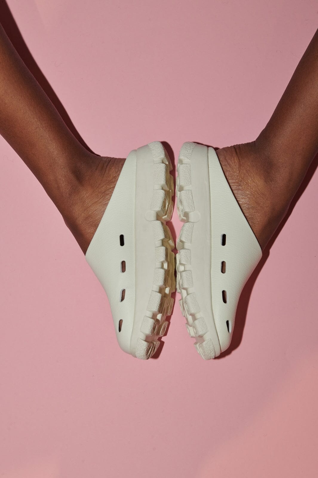 Weiße geschlossene Sandale von H2O mit robuster Sohle und Belüftungslöchern an den Seiten. Die Sandale besteht aus robusten Materialien und hat eine solide Konstruktion für den Außenbereich.