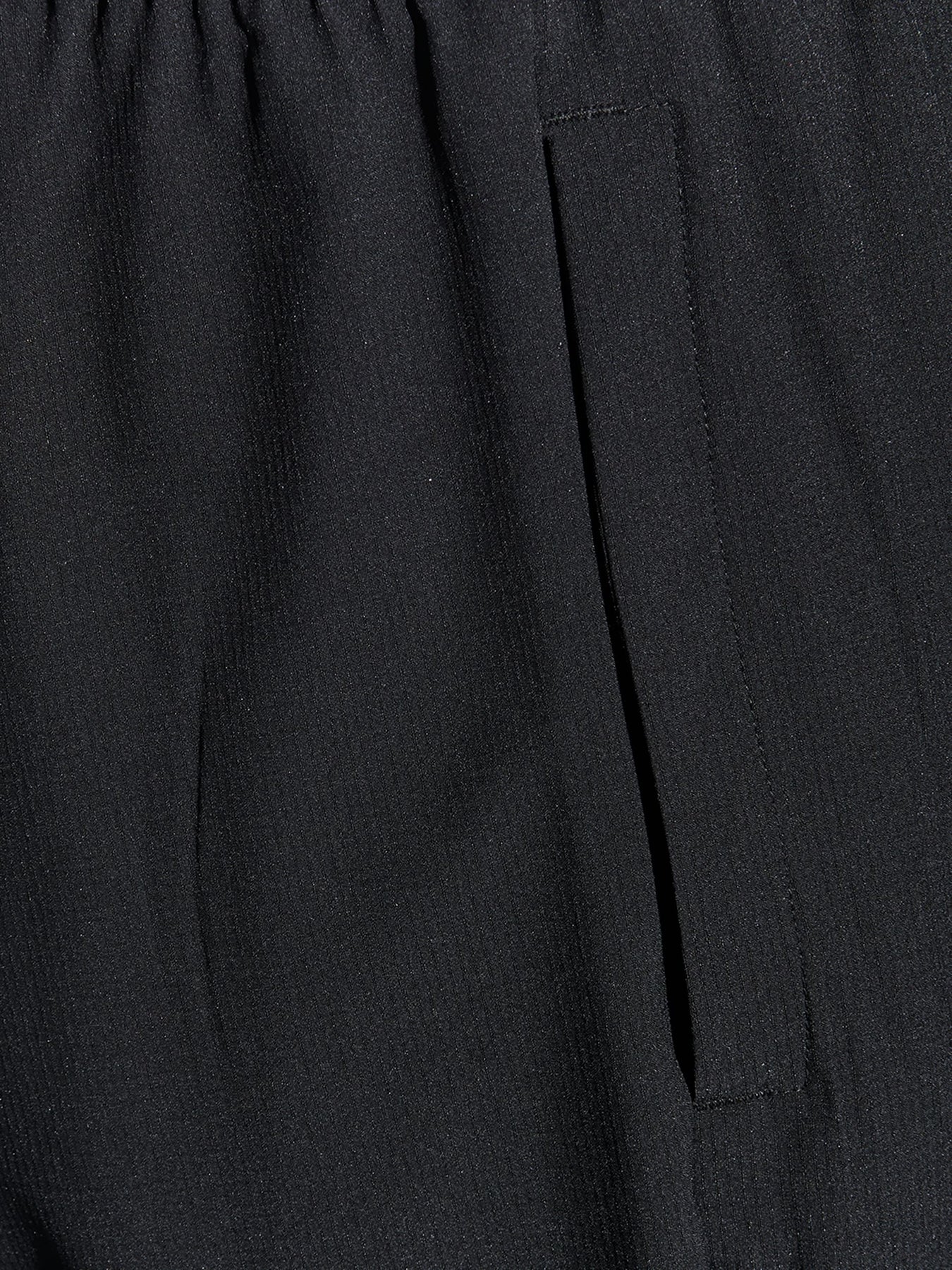 Schwarze Trailhose von Halo, gefertigt aus 90 % Polyamid und 10 % Elasthan. Die Hose hat einen verstellbaren Kordelzug in der Taille, verstellbare Knöchelabschlüsse und mehrere Taschen.