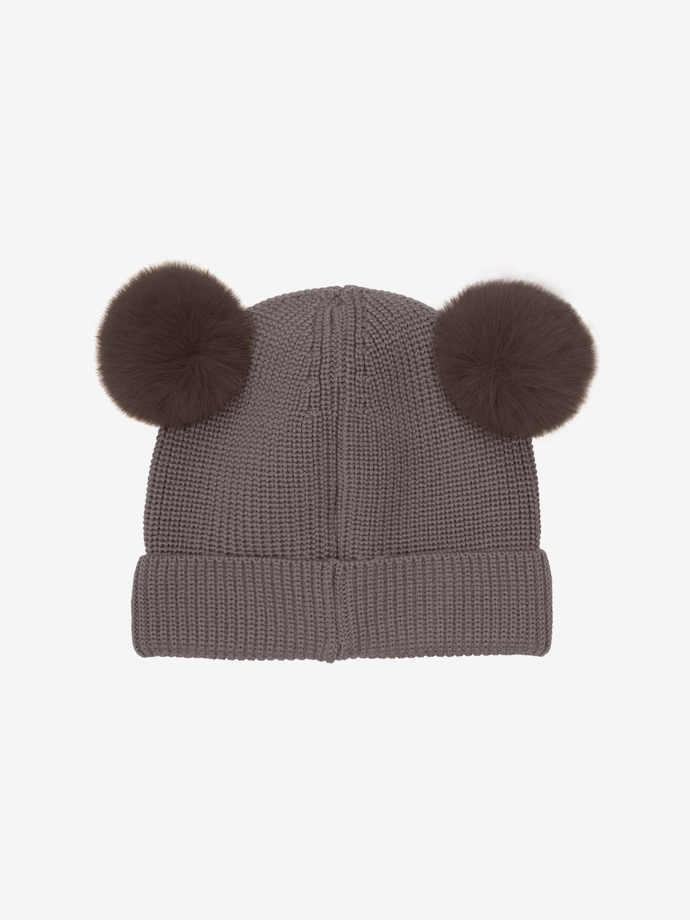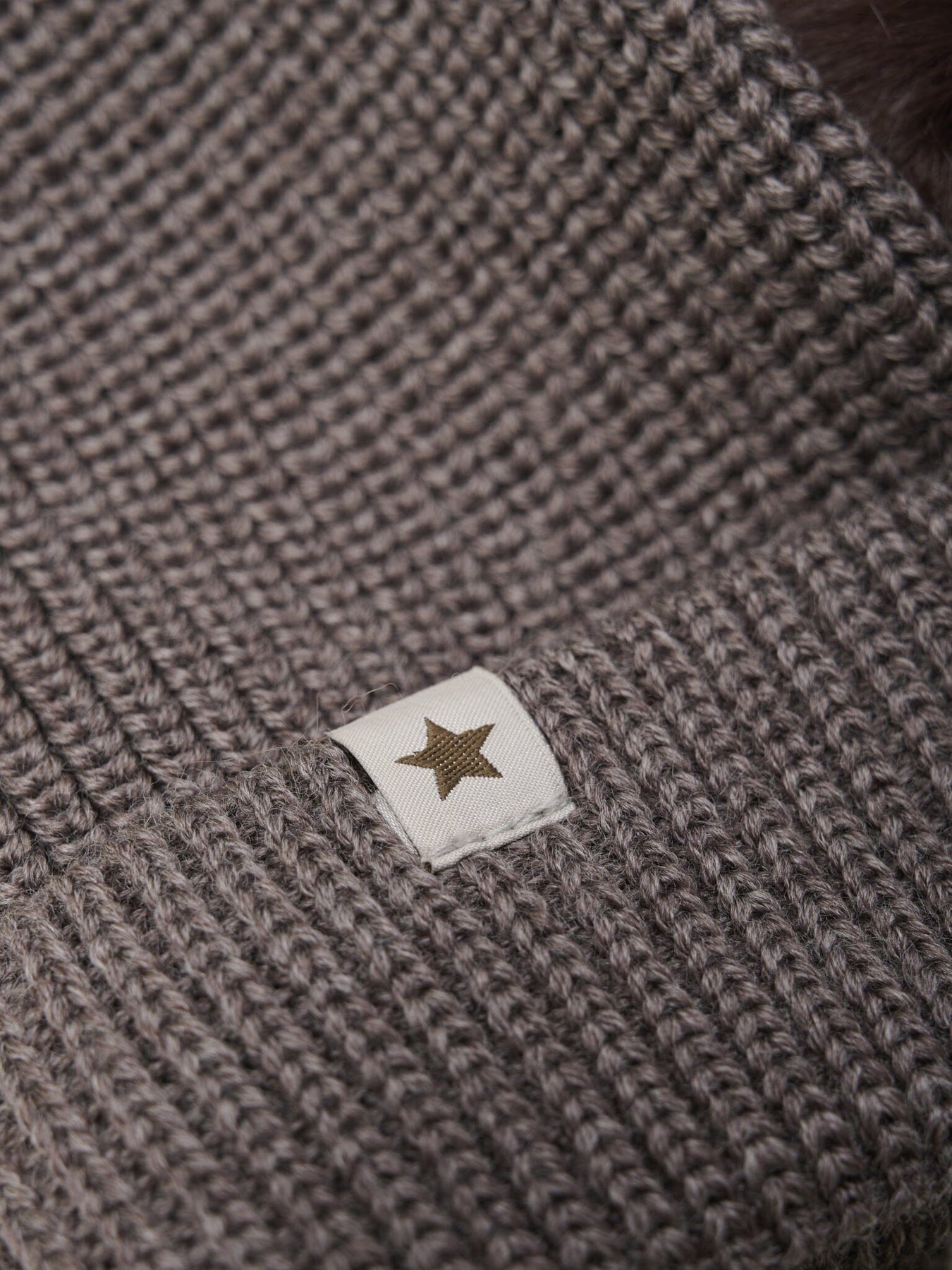 Huttelihut Beanie Wool Knit Pompoms 460389 Farbe: 2152 Brown Melange