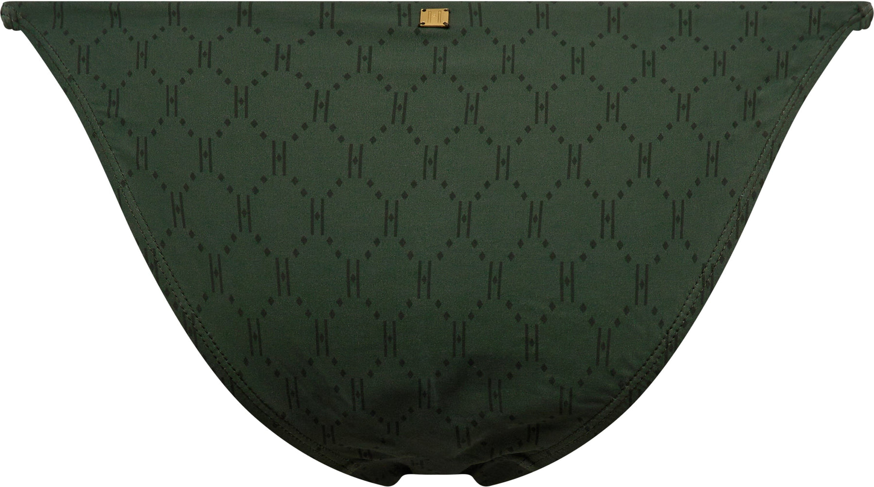 Grüne Bikini-Tanga von Hype The Detail mit einem geometrischen Print aus H-Logos. Der Tanga-Stil hat schmale Seiten und Bindedetails.