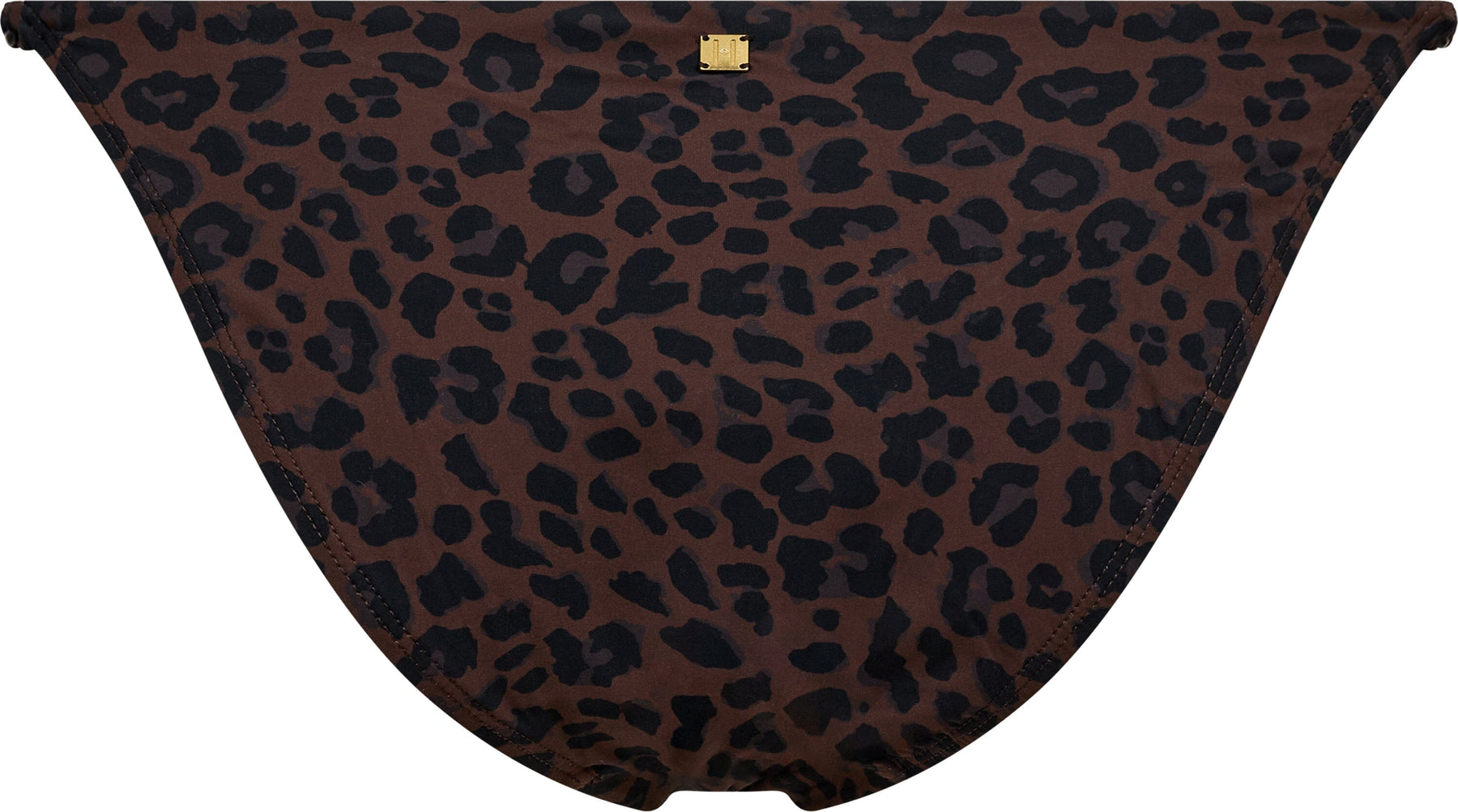 Bikini-Tanga von Hype The Detail, aus Polyamid und Elasthan mit braunem Leopardenmuster. Das Design hat dekorative Nähte und Bindebänder.