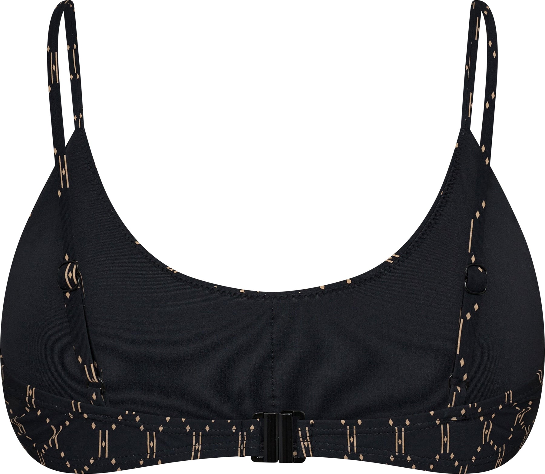 Schwarzes Bikini-Top von Hype The Detail mit geometrischem Muster in Beige auf schwarzem Hintergrund. Das Top hat dünne Träger und einen runden Halsausschnitt.