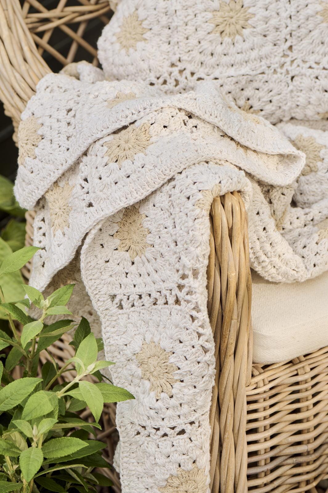 Ib Laursen Ib Laursen - Plaid hæklet creme m/naturfarvede blomster Farbe: 100% bomuld