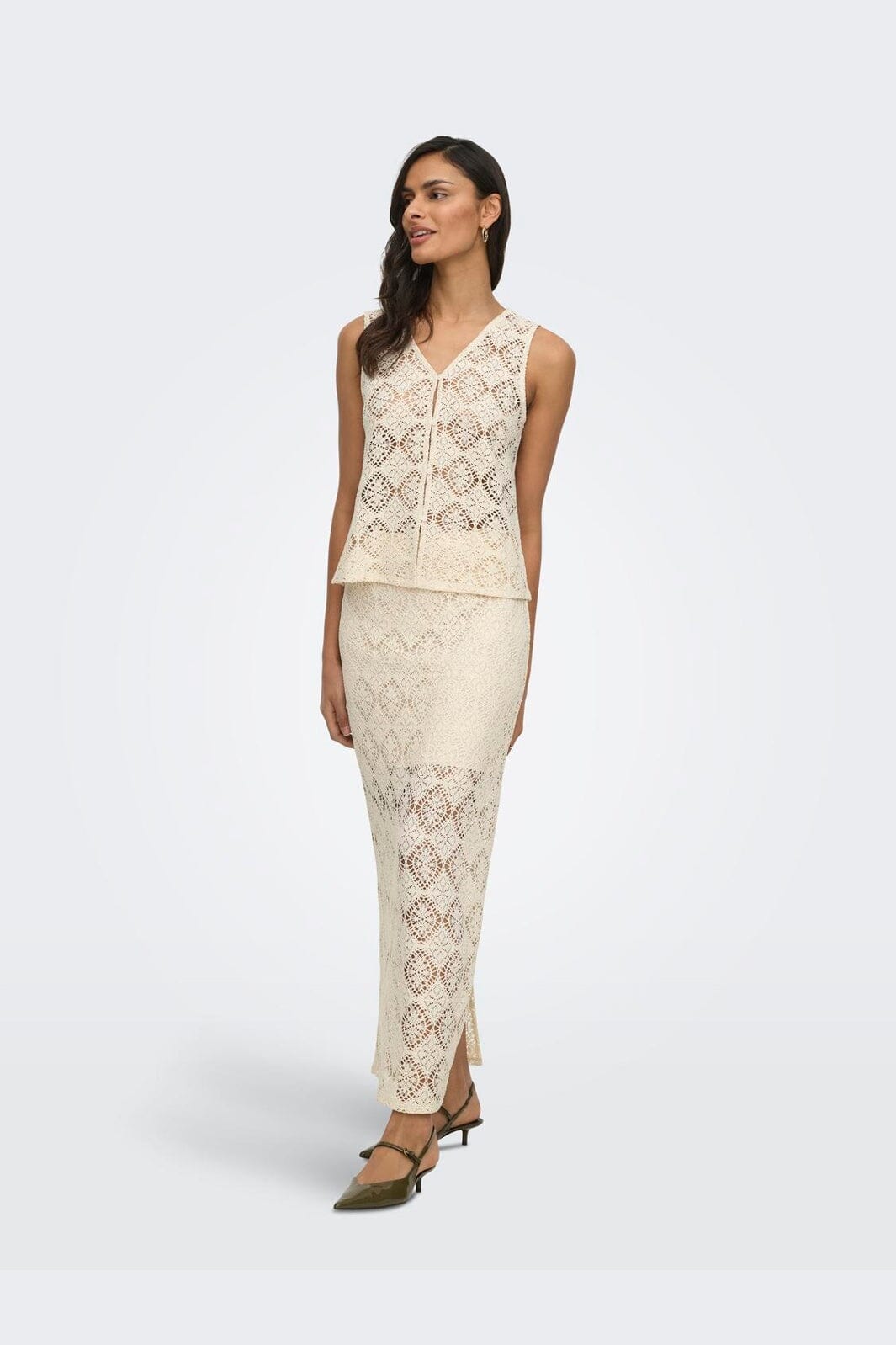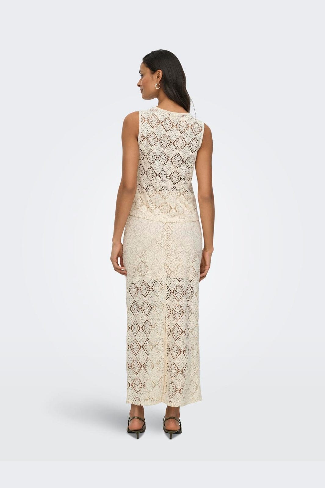 Ärmlose Top von JDY in hellem Cremefarbton mit spitzenähnlichem Muster. Die Regular-Fit-Passform sorgt für eine lässige Silhouette im Alltag.