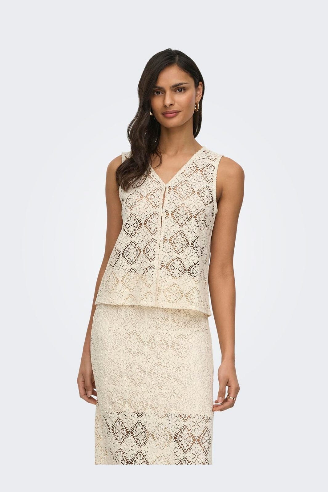 Ärmlose Top von JDY in hellem Cremefarbton mit spitzenähnlichem Muster. Die Regular-Fit-Passform sorgt für eine lässige Silhouette im Alltag.