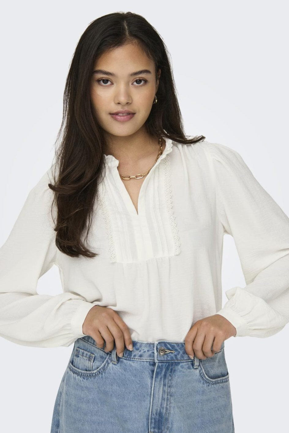 JDY Jdyrachel Life L/S Pintuck Top Farbe: 4505028 Cloud Dancer