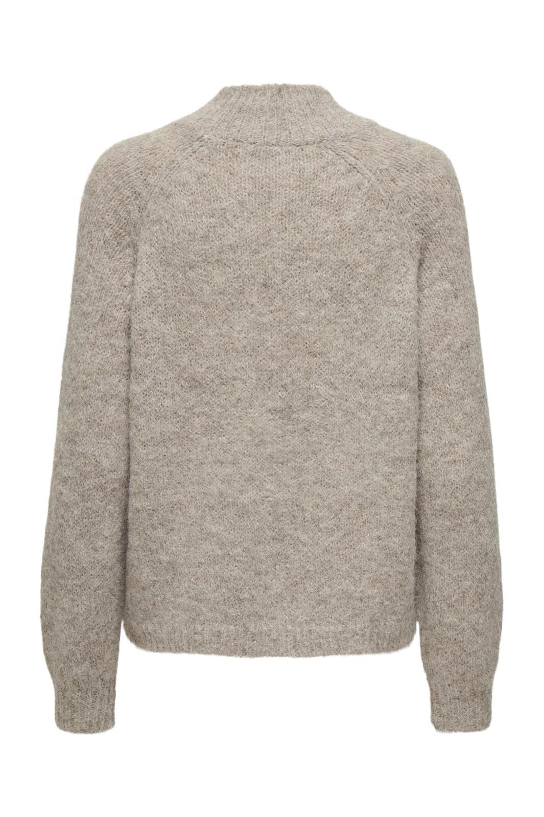 Grau melierte Strickjacke von JDY mit gesenkten Schulternähten und hohem Kragen. Sie hat lange Ärmel mit Rippbündchen und eine Regular Fit-Passform, die gute Bewegungsfreiheit bietet.