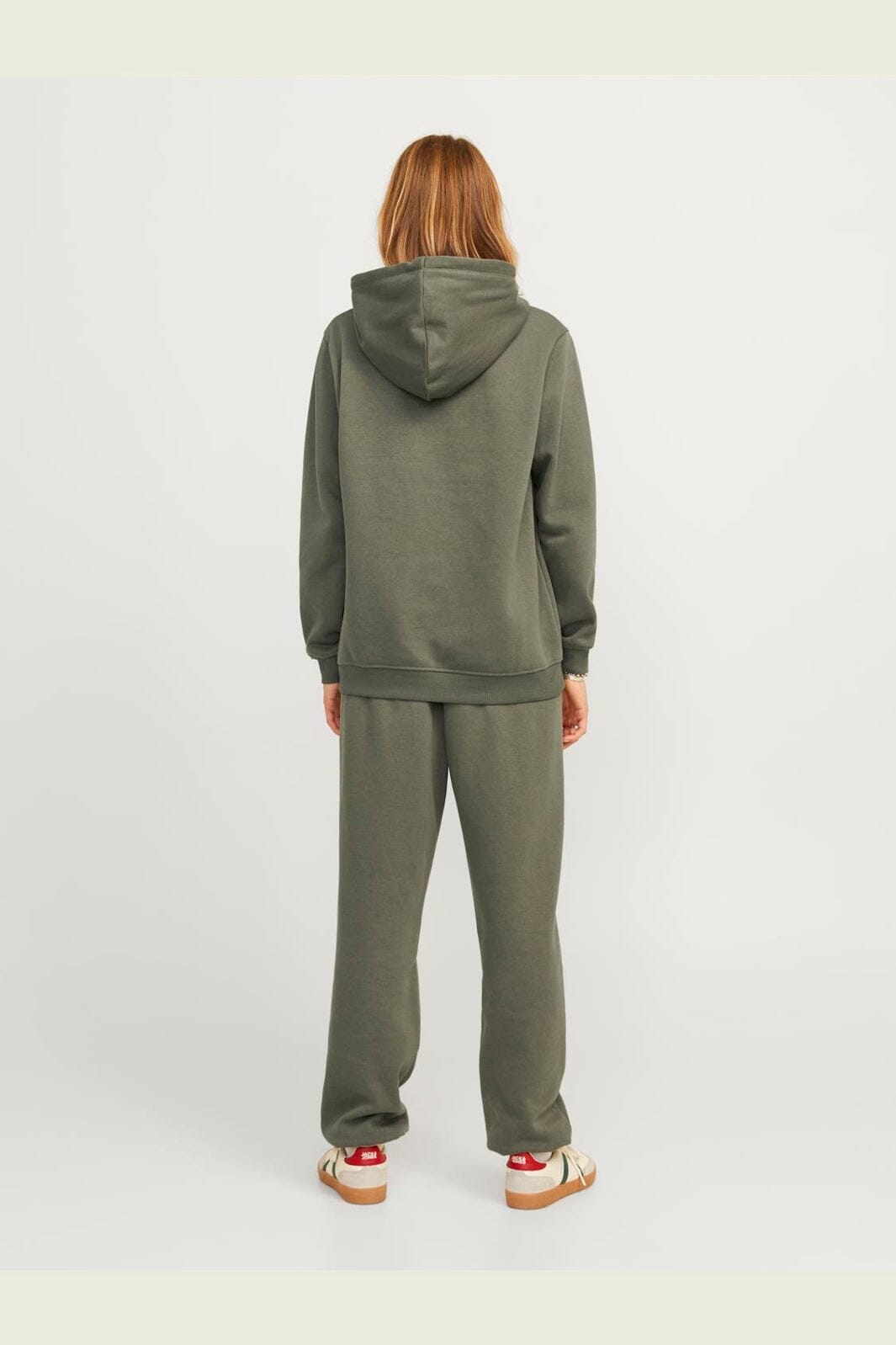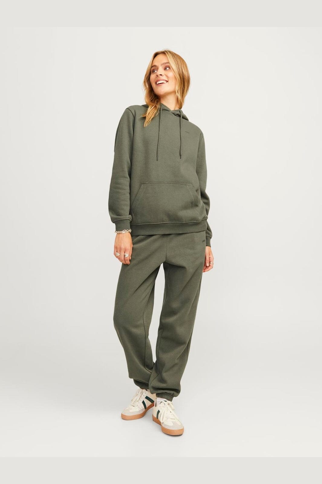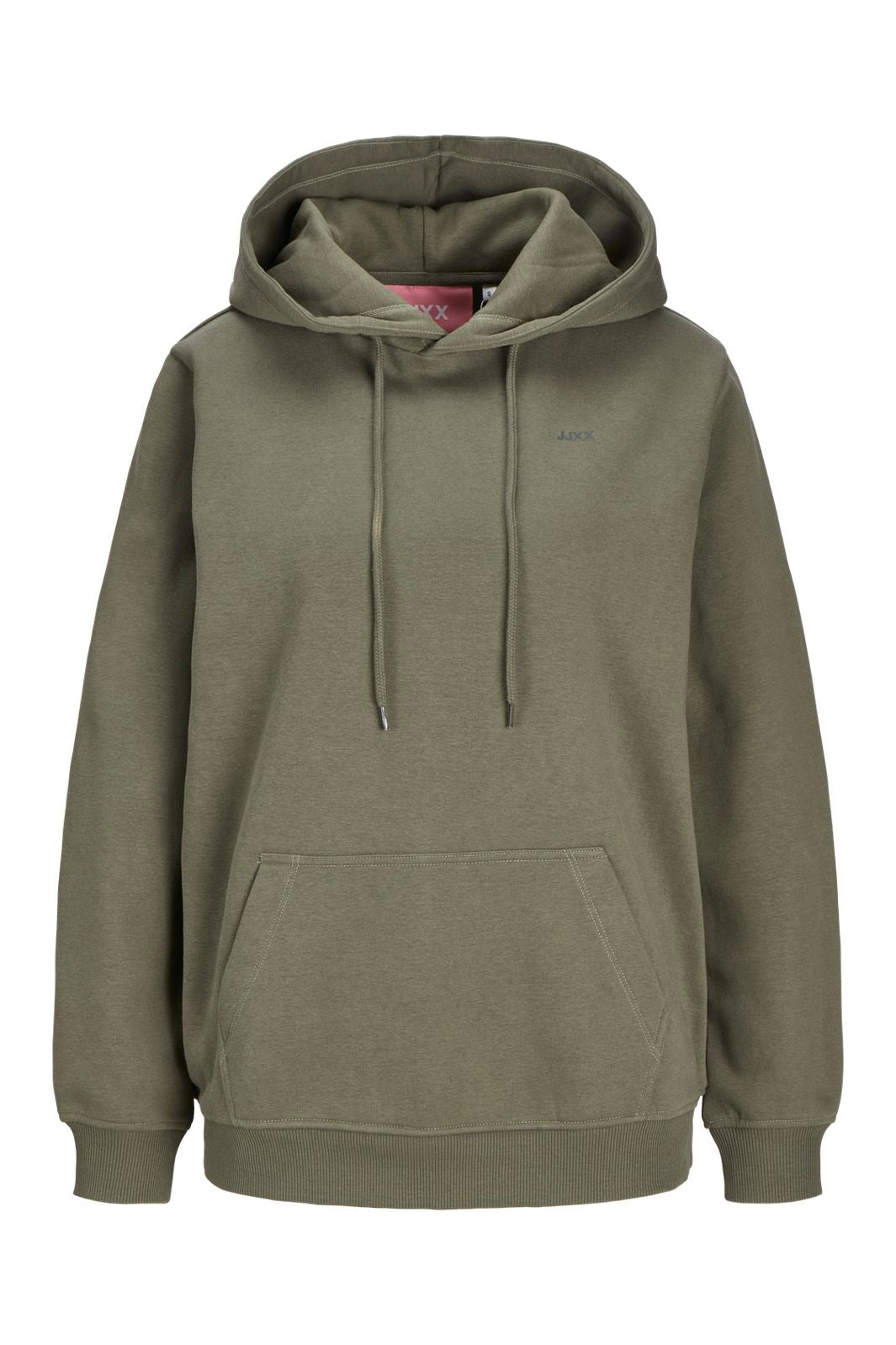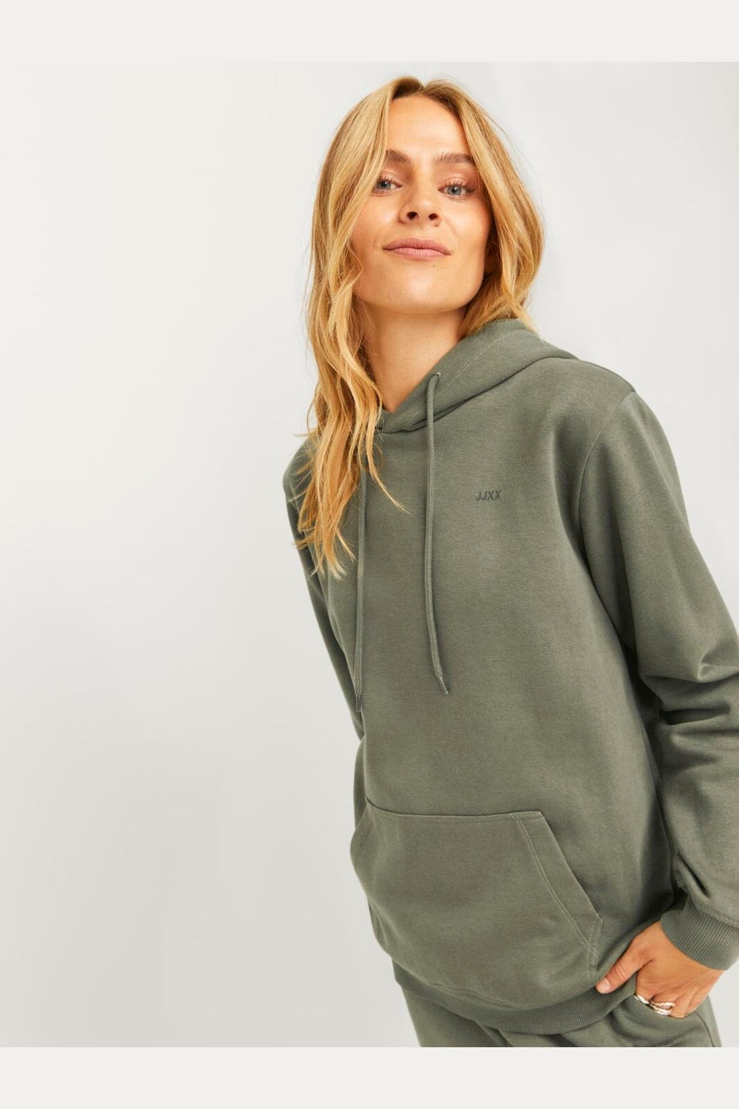 Grüner Hoodie von Jjxx mit lockerer Passform. Hergestellt aus weicher Baumwolle und recyceltem Polyester mit gestickten Details und einem dezenten Logo auf der Brust.