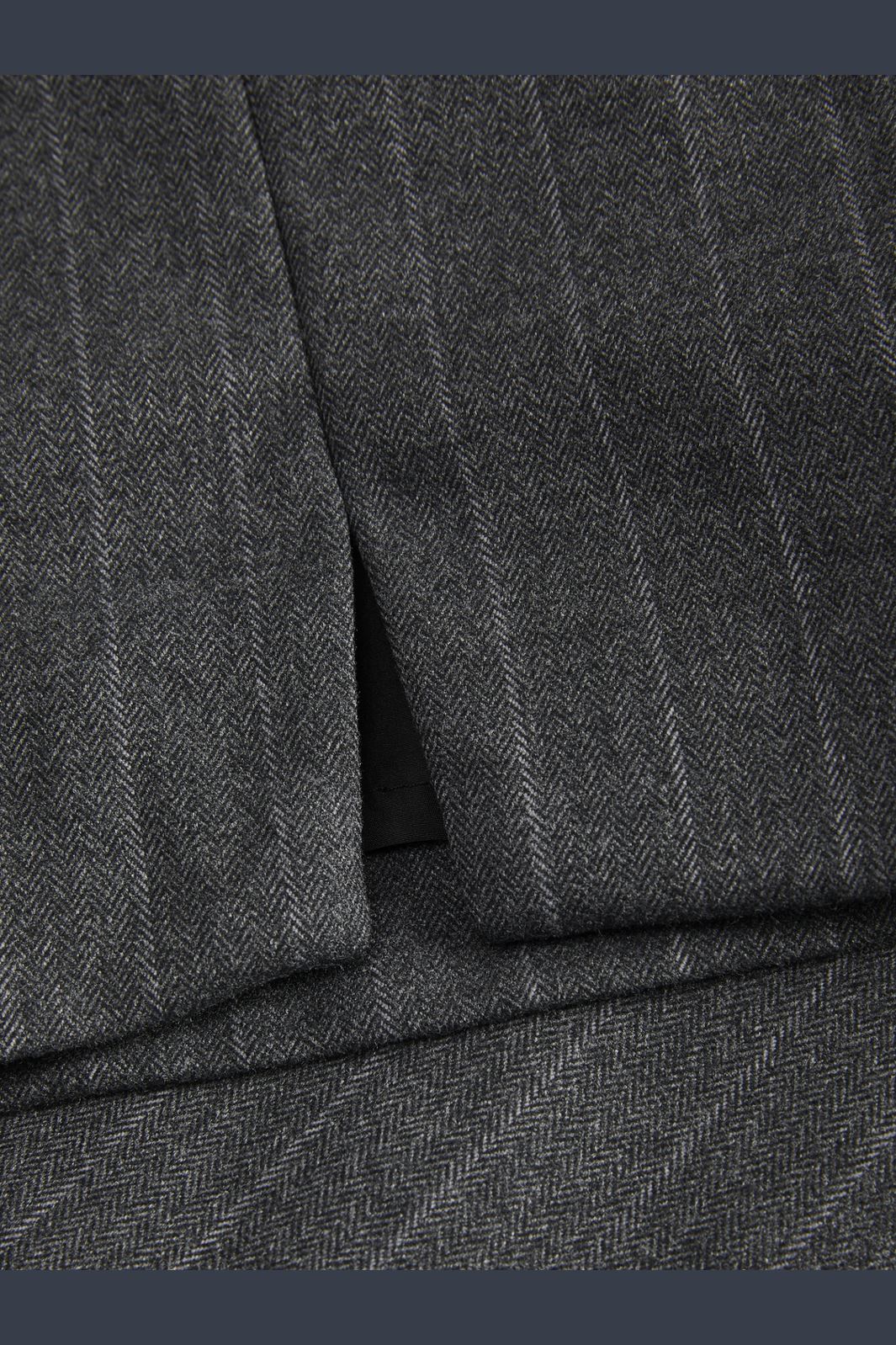 Dunkelgrauer Rock von Jjxx mit hellgrauen Streifen. Die gebürstete Oberfläche verleiht einen weichen Ausdruck, während das Pinstripe- und Fischgrätmuster einen klassischen Look schafft.