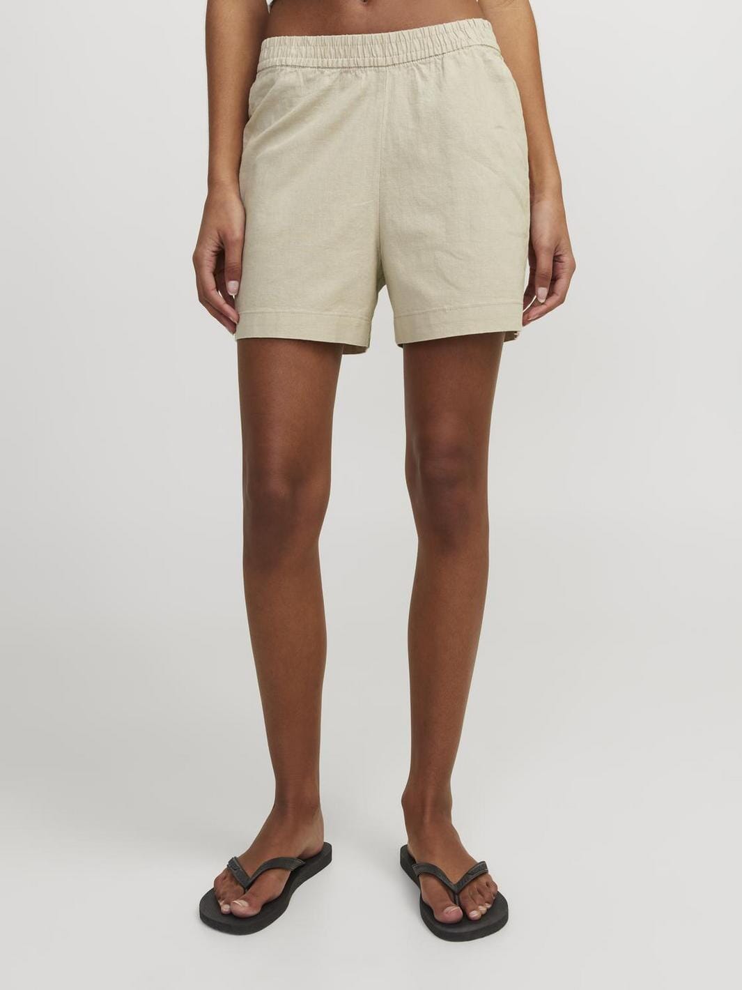 Helle beige Shorts von Jjxx mit hoher Taille und lockerer Passform. Die Shorts haben einen elastischen Bund und Taschen, die sie im Alltag einfach zu tragen machen.