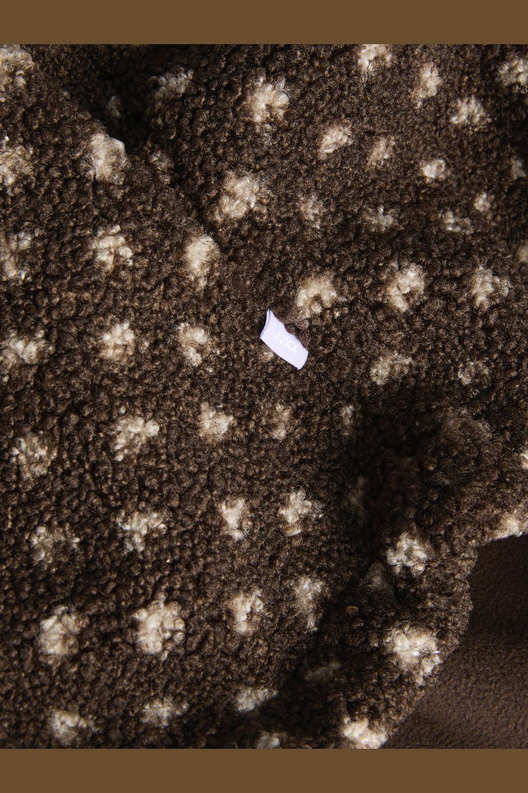 Braune Teddyjacke von Jjxx mit weißen Polka-Dots. Die Jacke ist aus weichem Teddy-Stoff gefertigt und hat einen hohen Kragen sowie einen halblangen Reißverschluss vorne.