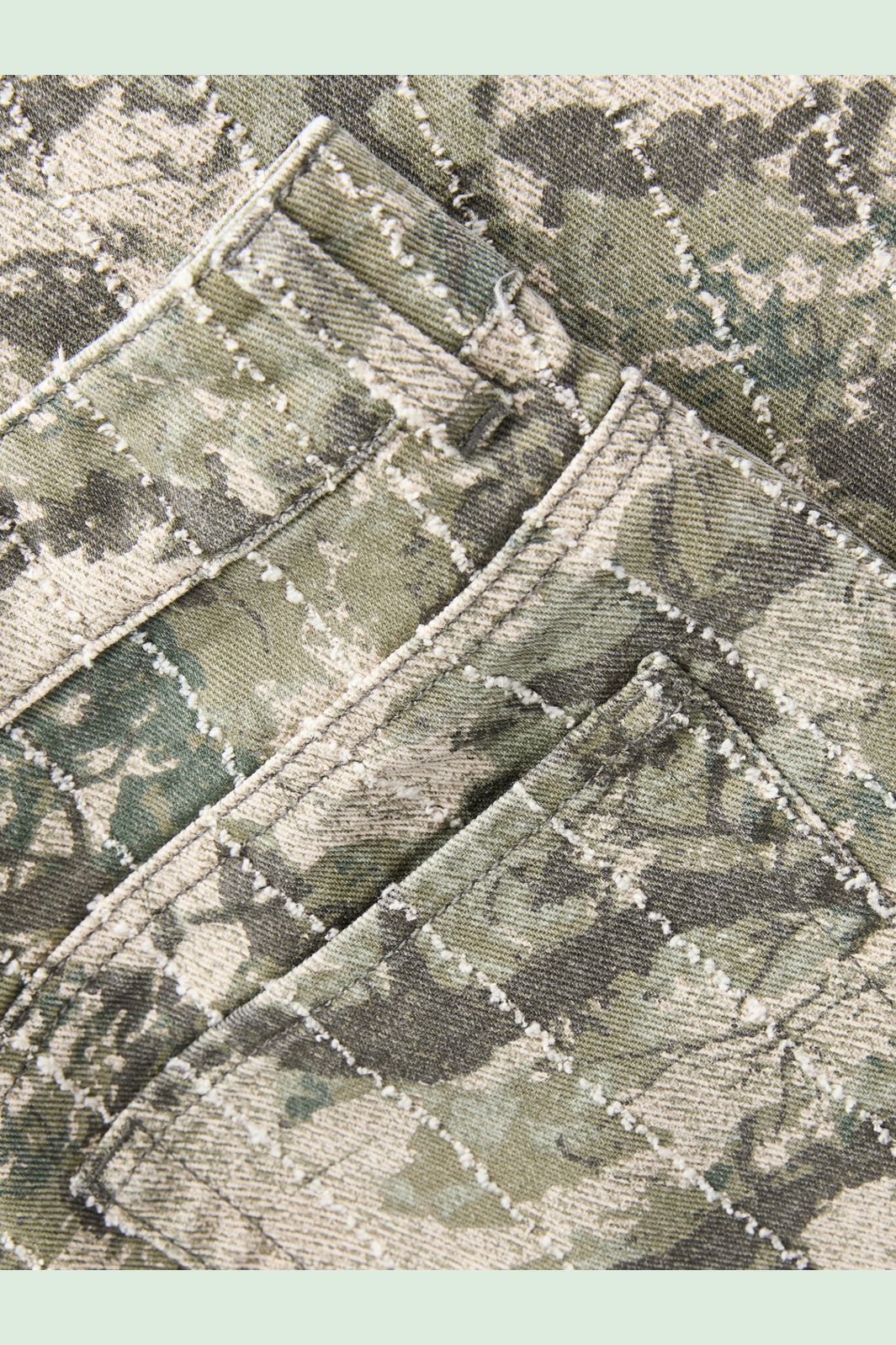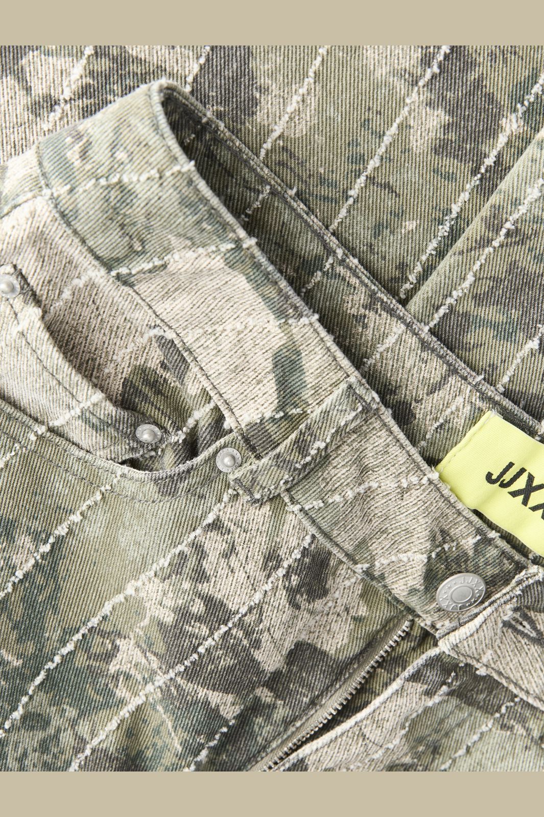 Weite Hose von Jjxx in einem khakigrünen Farbton mit Camouflagemuster und feinen Nadelstreifen. Die Hose besteht aus gewebtem Baumwollstoff.