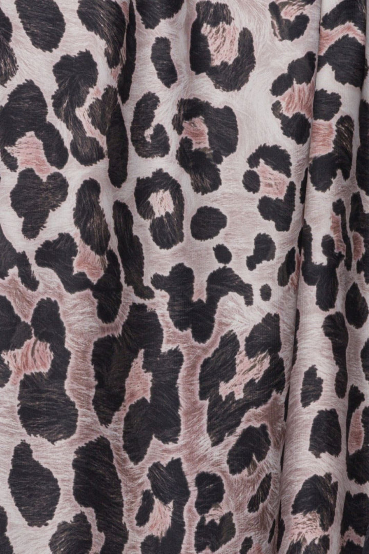 Langes Kleid von Karmamia mit Leopardenmuster und Blumenmuster. Der hohe Kragen hat Bindebänder, und das Kleid hat eine lockere Passform mit Bindebändern in der Taille.