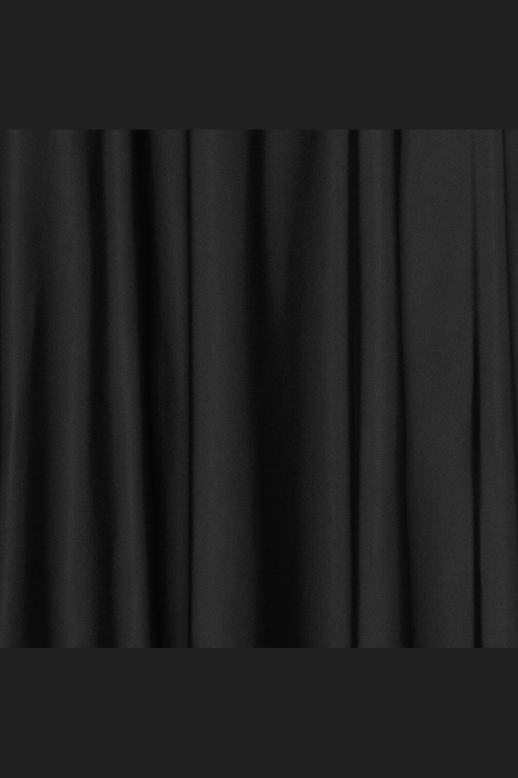 Schwarzer Rock von Karmamia aus halbglänzendem Satin. Er hat eine hohe Taille mit Raffungen und dekorativen Nähten. Der Rock reicht bis zur Mitte der Wade und hat eine lockere Passform.