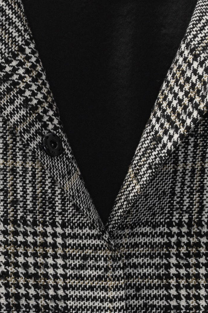 Kurze Jacke von Karmamia in grauem Karo. Die Außenschicht ist aus Wolle und das Innenfutter aus weichem Satin.