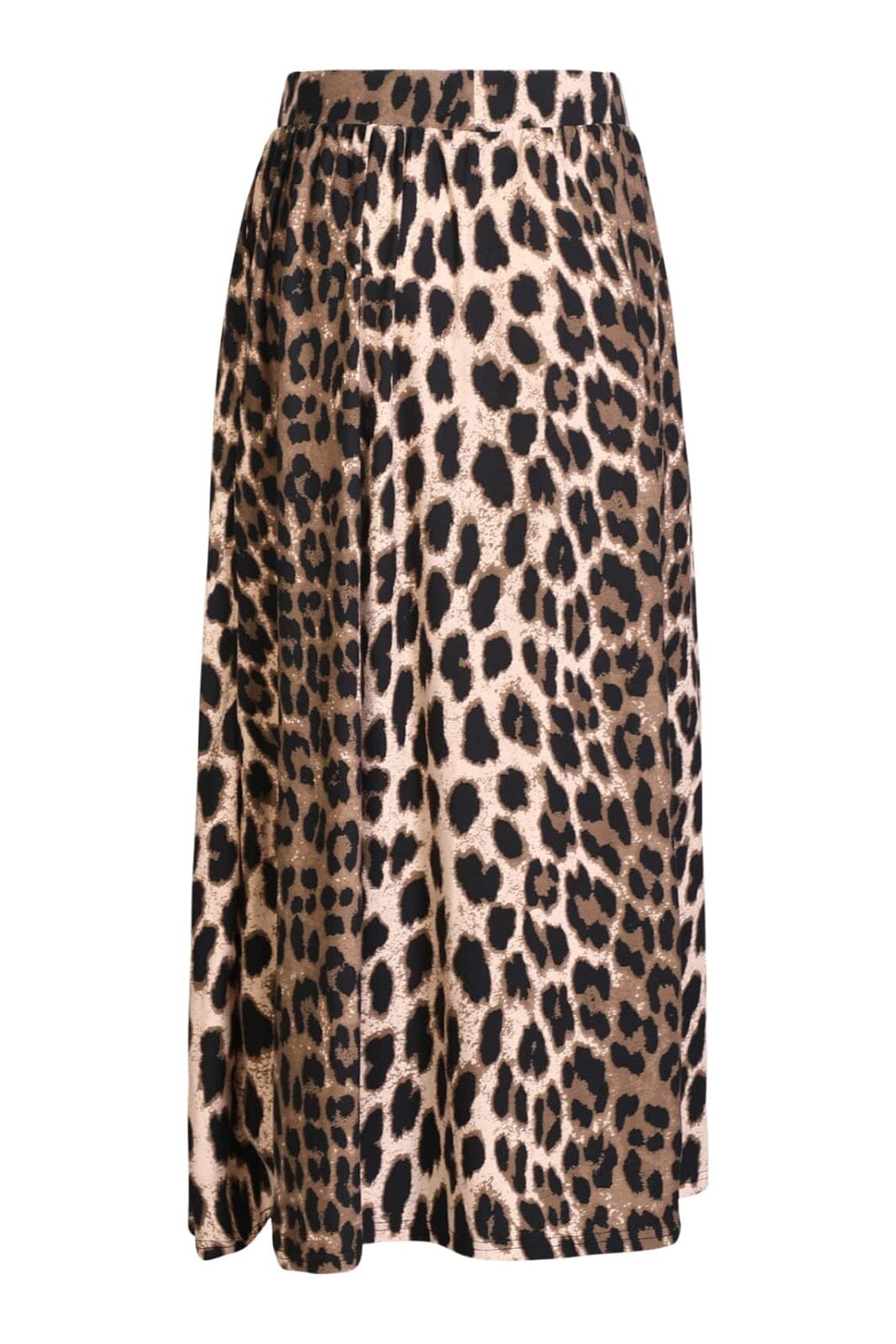 Locker sitzender Rock in beige und schwarzem Leopardenmuster. Der Rock hat ein Bindeband in der Taille und eine lockere Passform, die gute Bewegungsfreiheit bietet. Das lange Modell reicht bis zur Mitte der Wade.